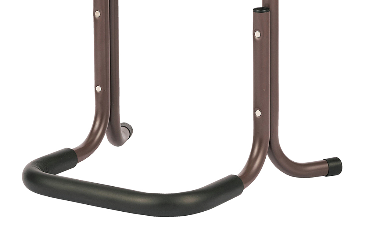 しっかりとした作りのスチール製で、安心して体重を預けられます。足元は安定感のあるハの字形状です。
