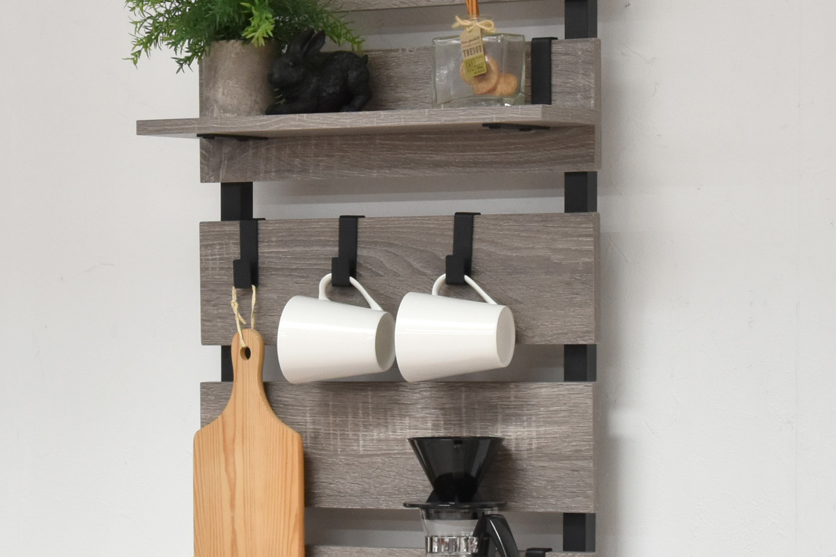ズレにくく、安定感のあるスクエア型のフックが7個付属しています。好きな場所に取り付けられるので、マグカップを掛けたり植物を吊るしたりと、お好みのディスプレイをお楽しみいただけます。