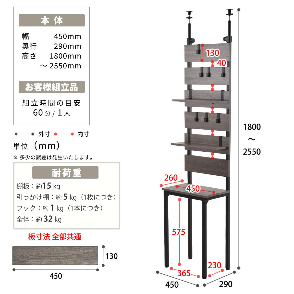 | サイズ | 約 幅45×奥行29×高さ180~255(cm) |
