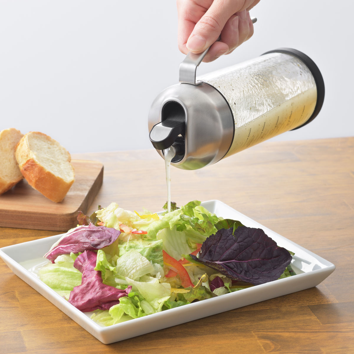 目盛り表記付きで分量が計りやすく、ドレッシング作りにも便利です。