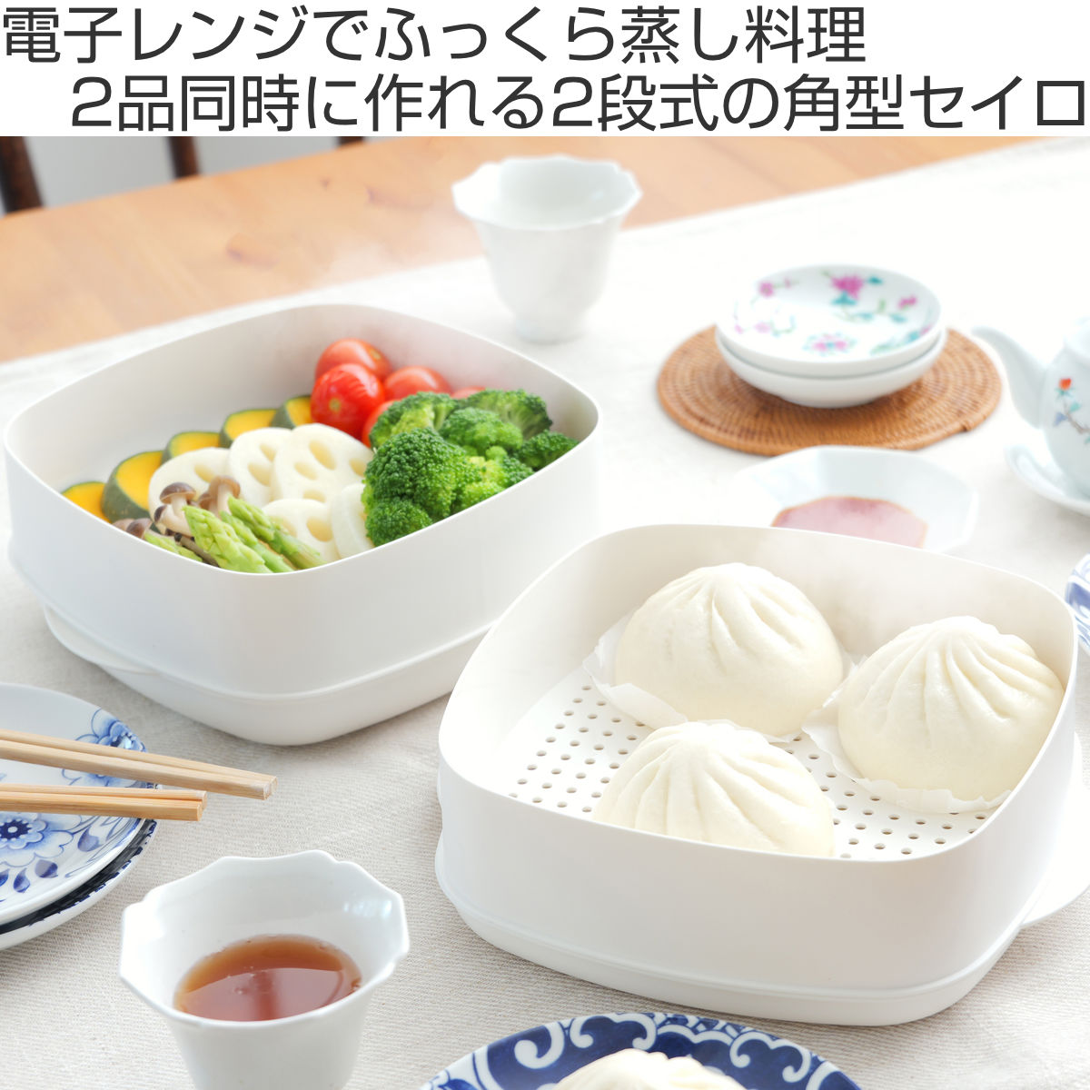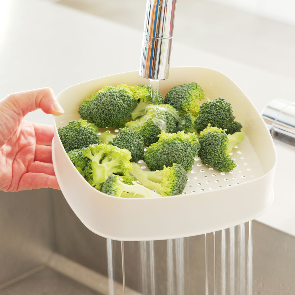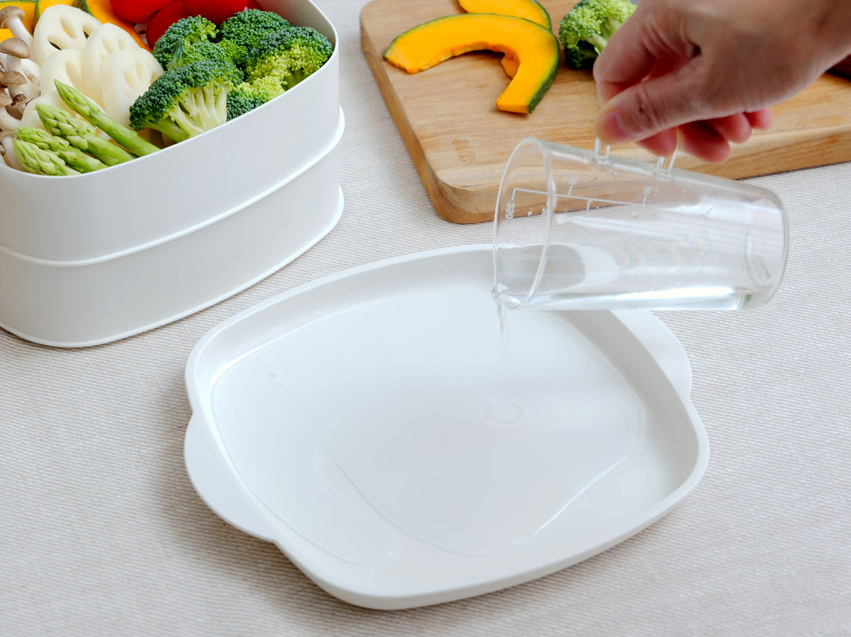 セイロをザルとして使えるため、野菜を洗ってそのまま電子レンジで加熱するだけで、簡単に蒸し野菜が作れます。
