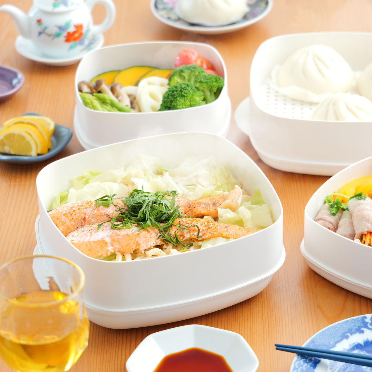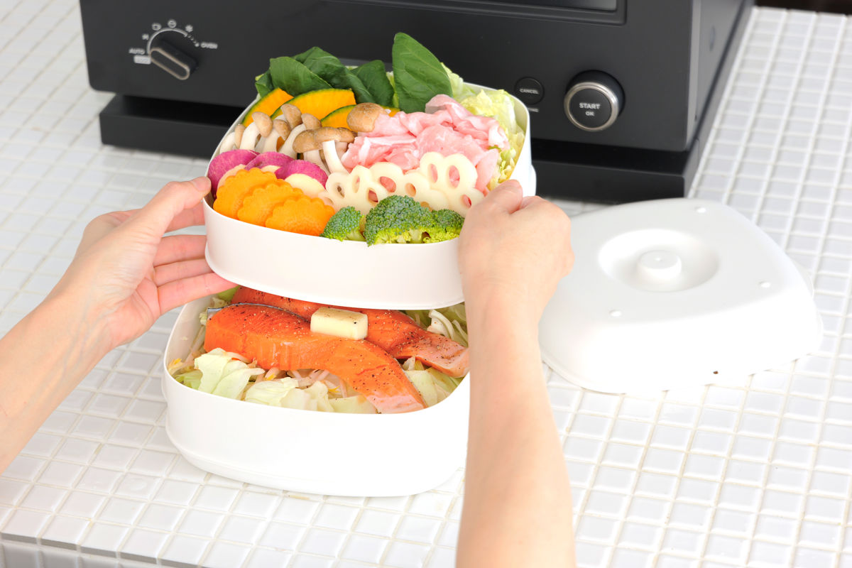 2段セイロで2品同時に調理できるので、ワンプレートがあっという間に完成します。