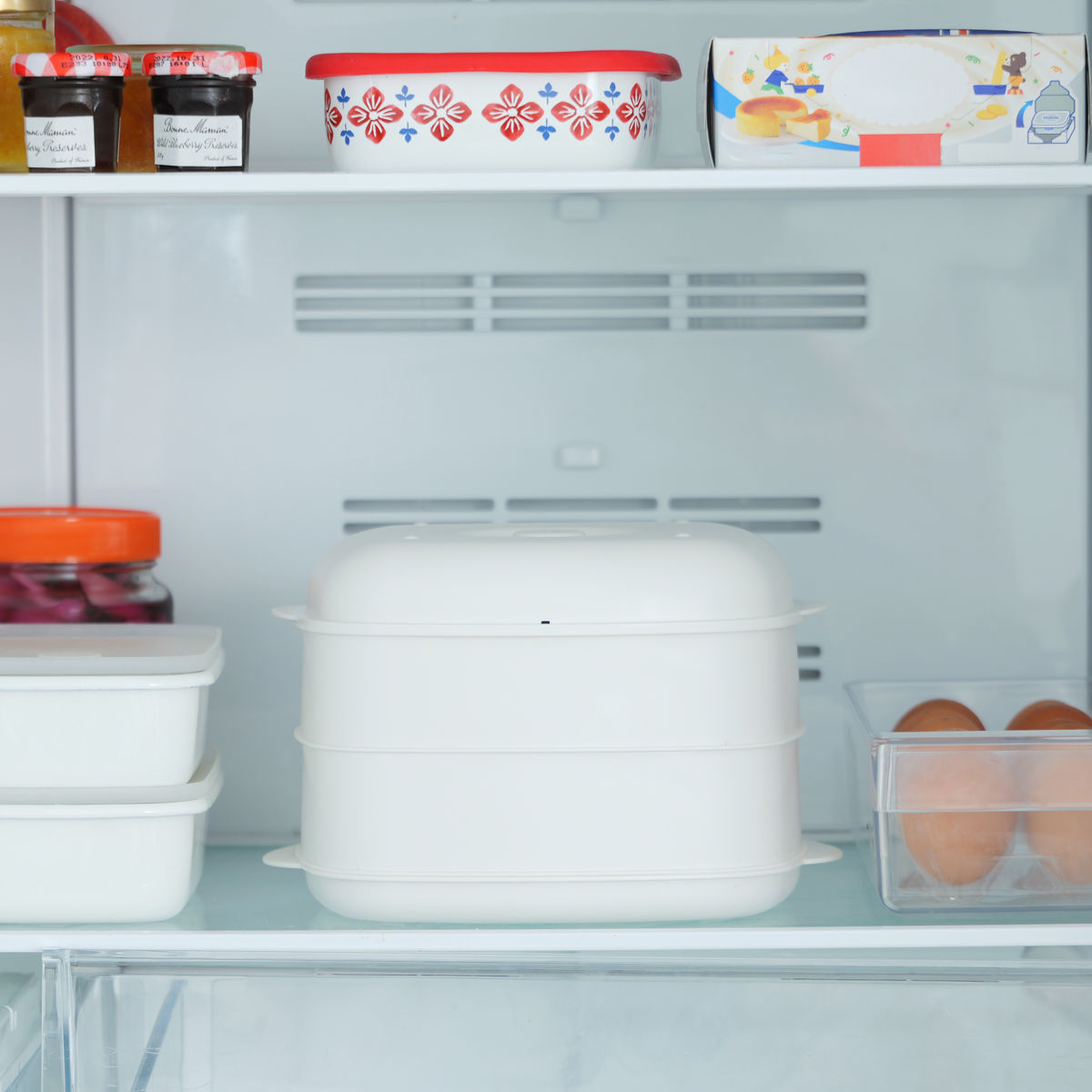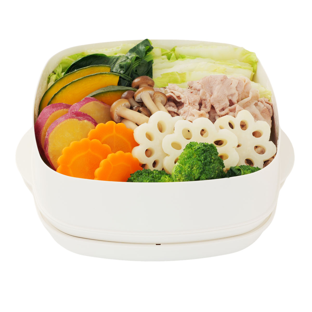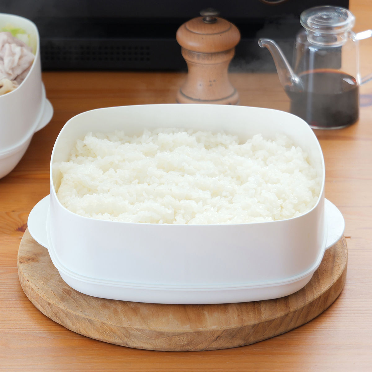受け皿のお湯がスチームとなり、セイロ全体を循環してムラなく加熱。おいしさを閉じ込め、しっとり・ふっくらと仕上がるので、冷凍ご飯の解凍にも活躍します。