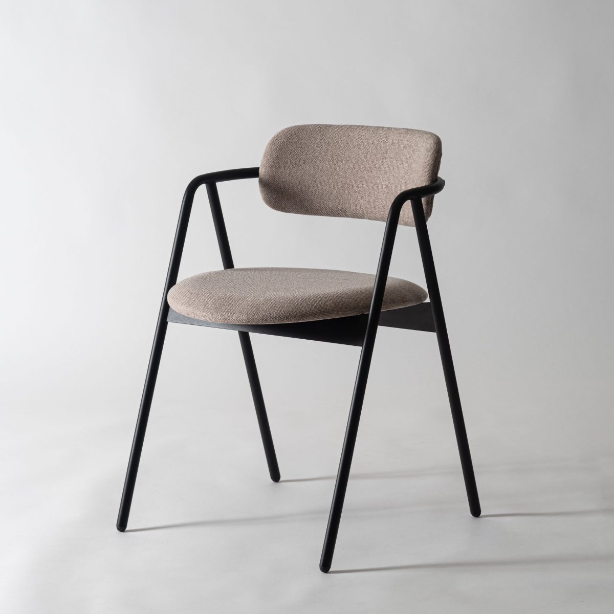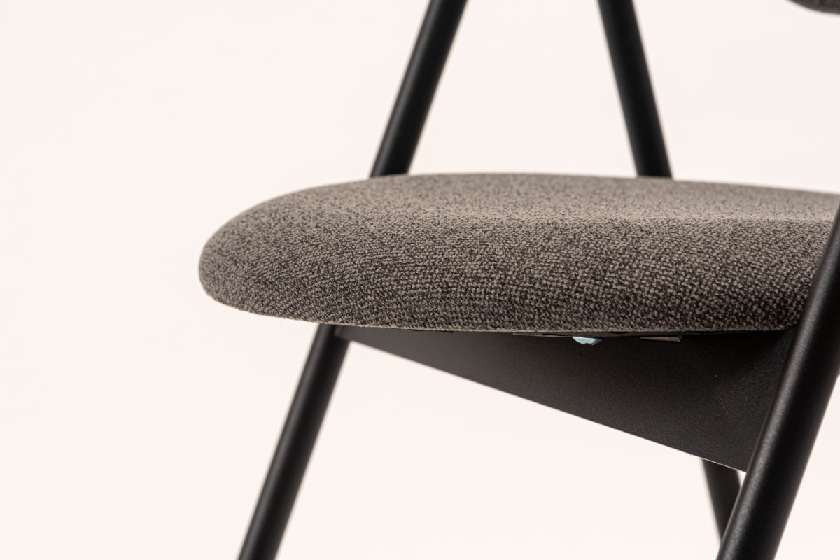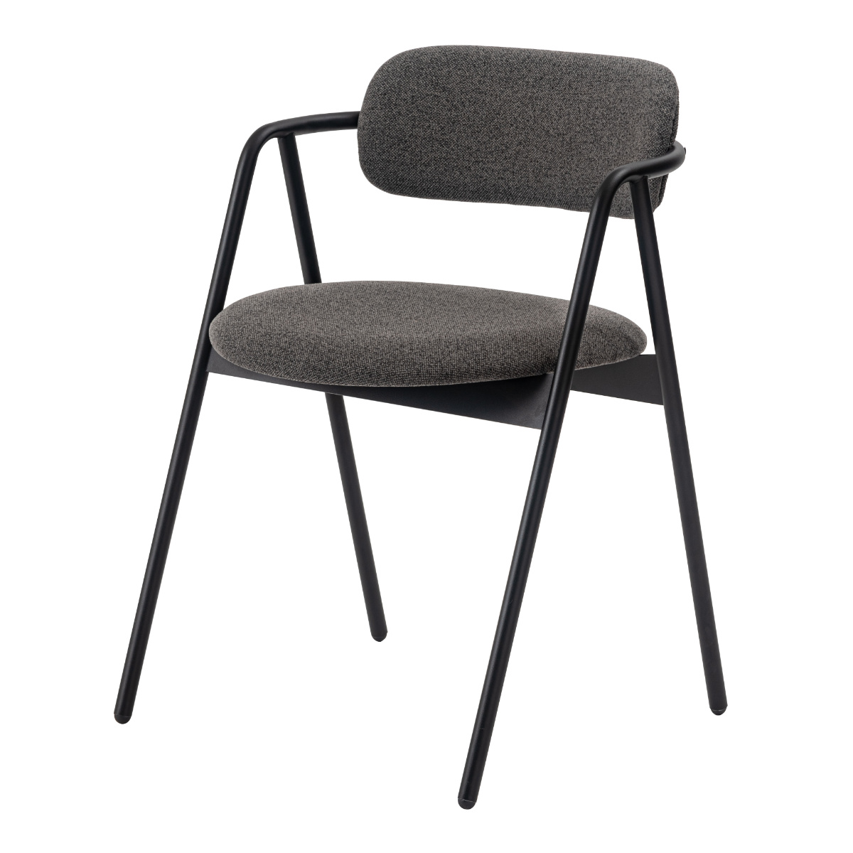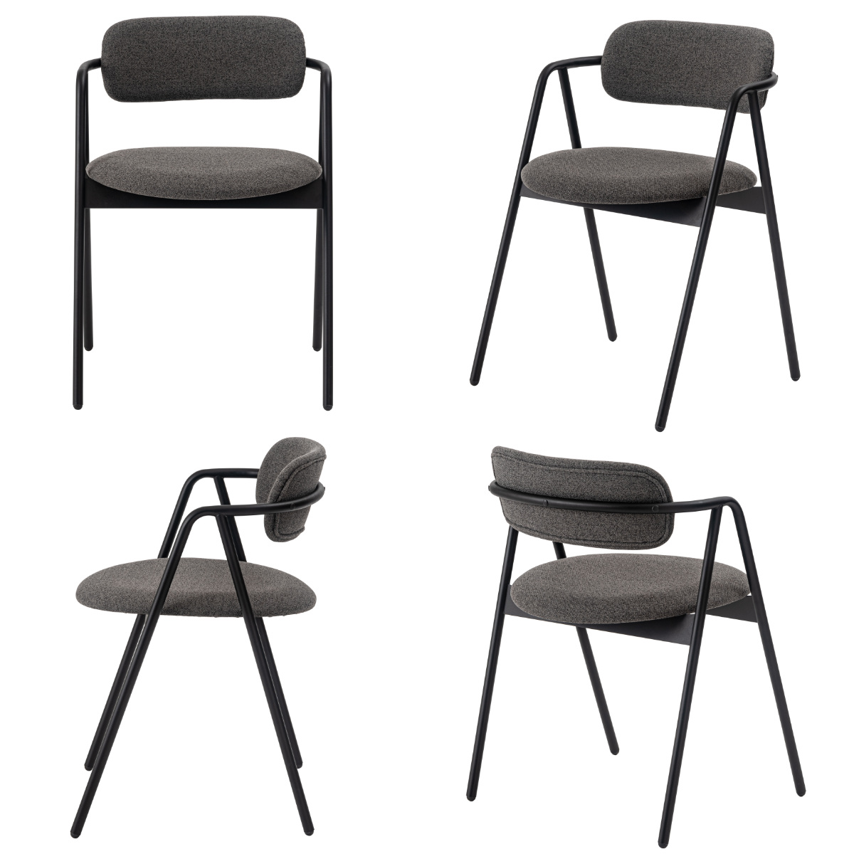 ブラックスチールの脚部が全体を引き締め、洗練された印象のチェアです。ファブリック座面を組み合わせることで、ほどよいカジュアルさをプラス。スタイリッシュでありながら気取らず、さまざまなインテリアに取り入れやすい一脚です。