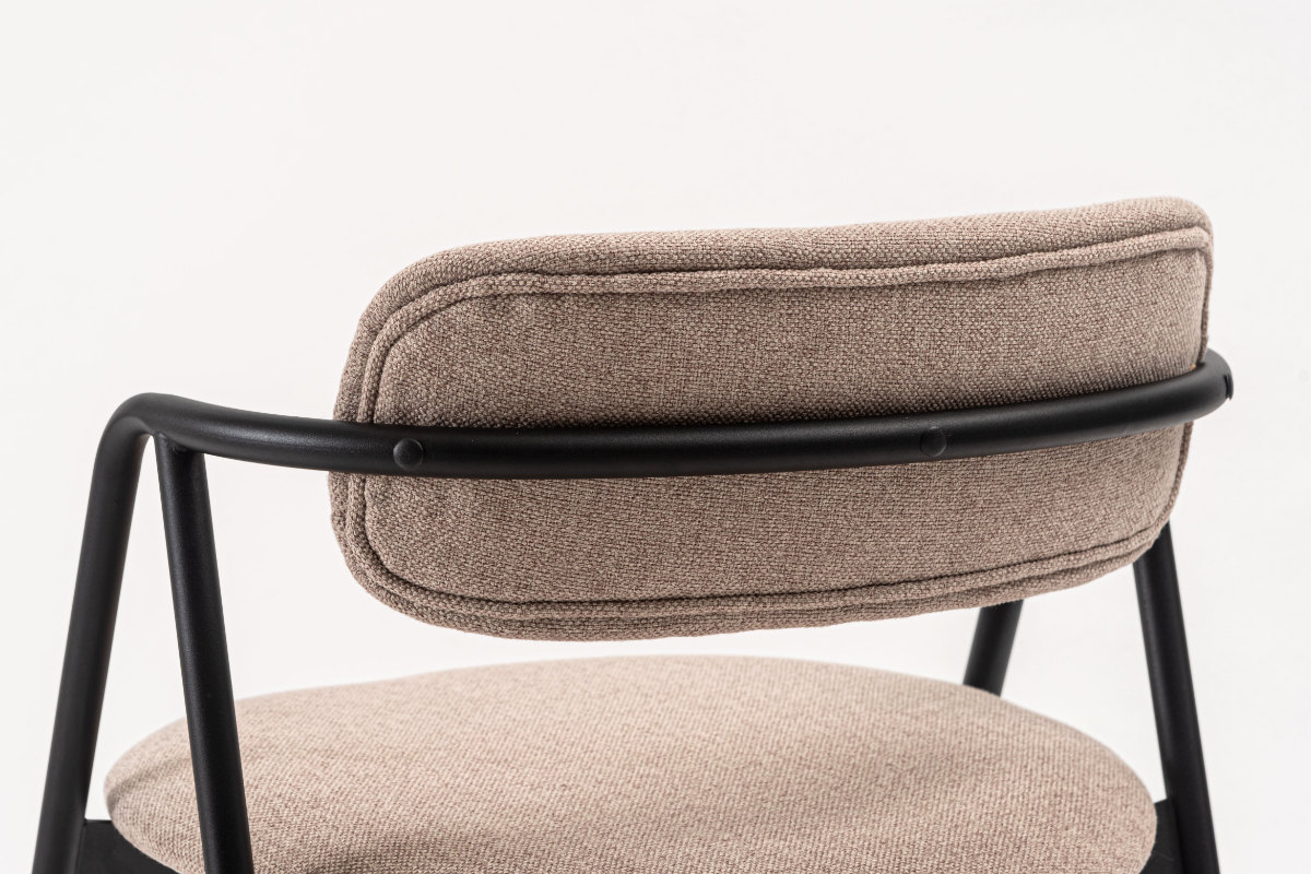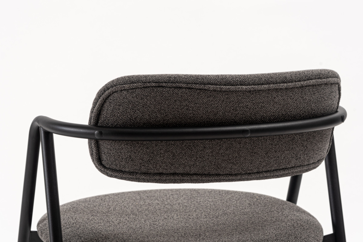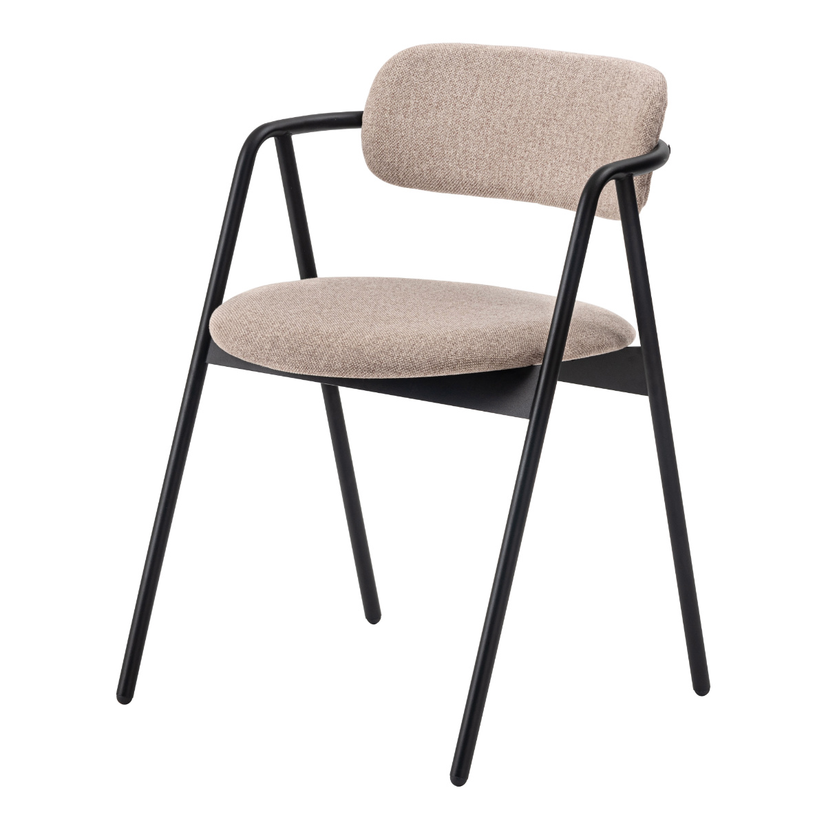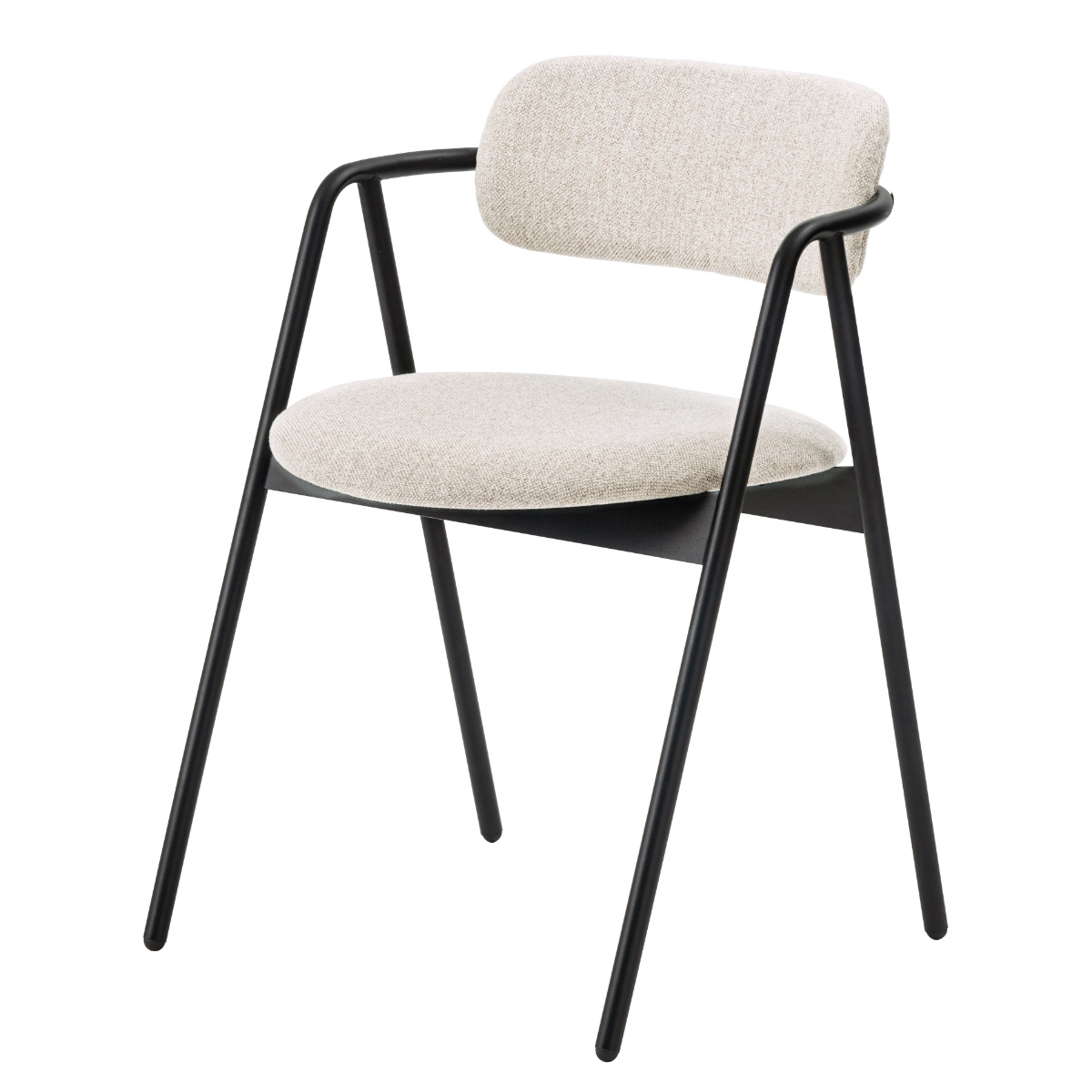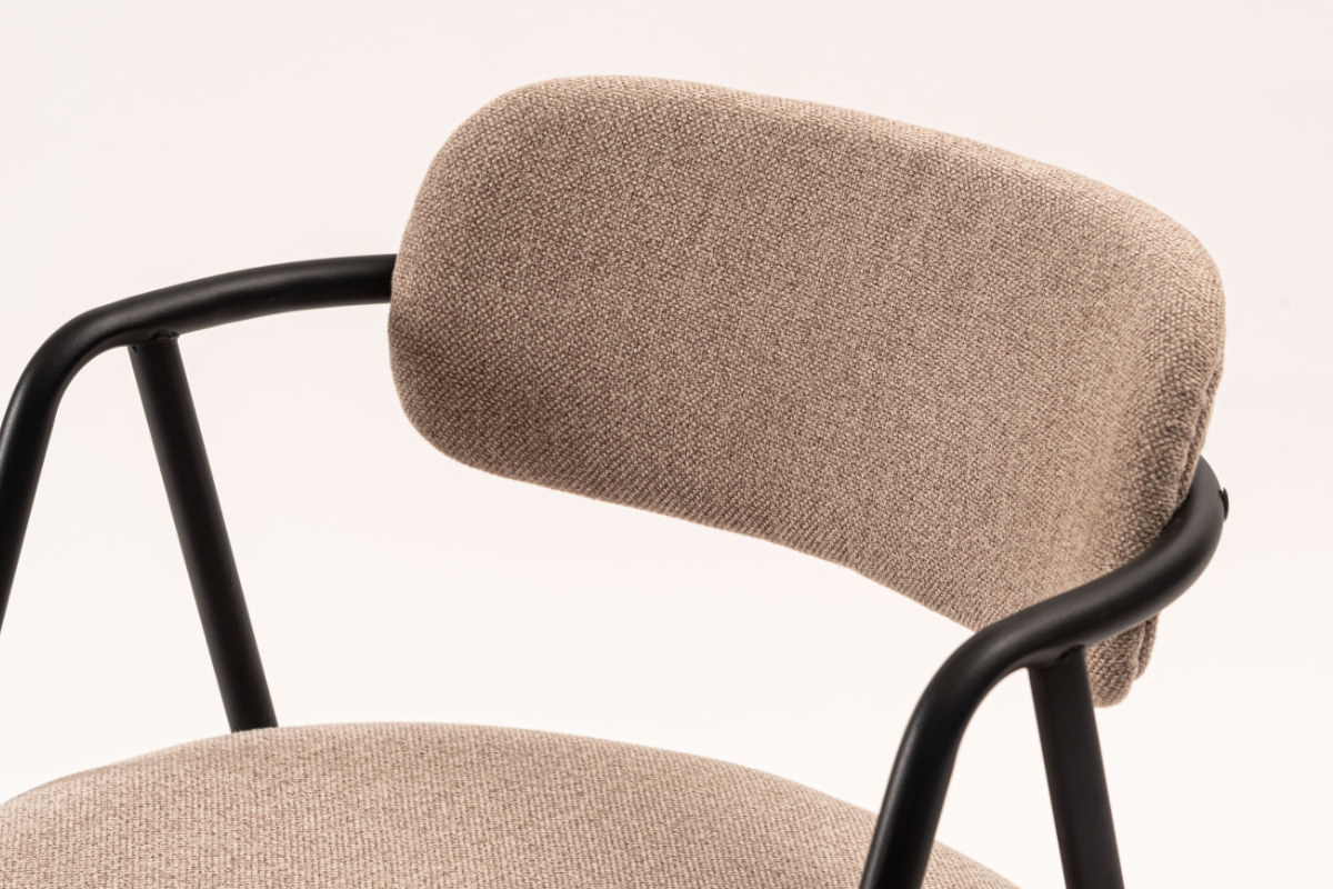 ブラックスチールの脚部が全体を引き締め、洗練された印象のチェアです。ファブリック座面を組み合わせることで、ほどよいカジュアルさをプラス。スタイリッシュでありながら気取らず、さまざまなインテリアに取り入れやすい一脚です。