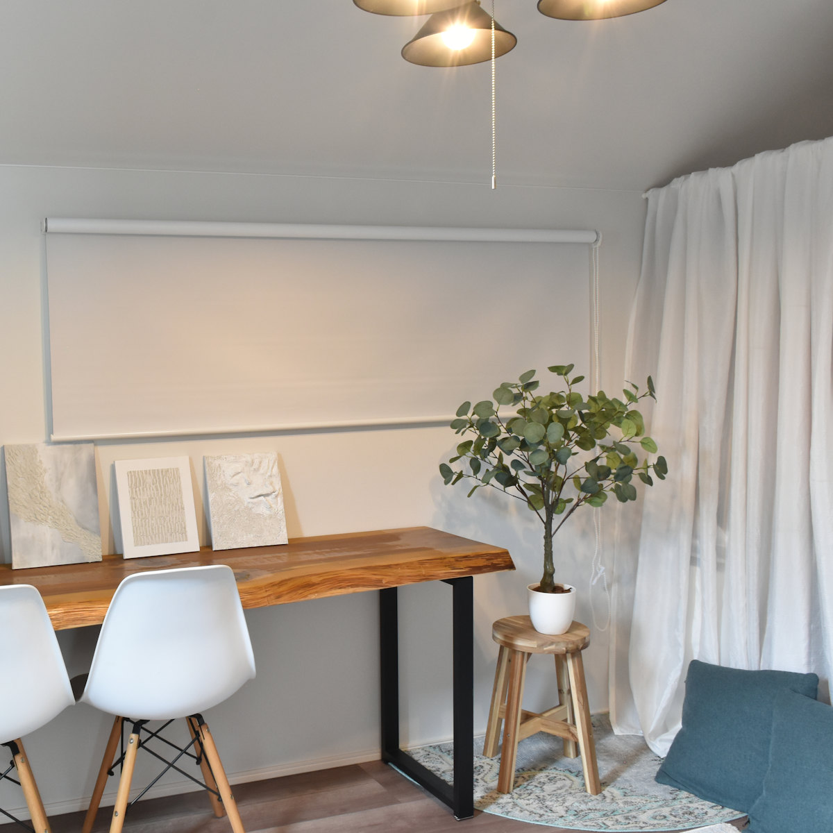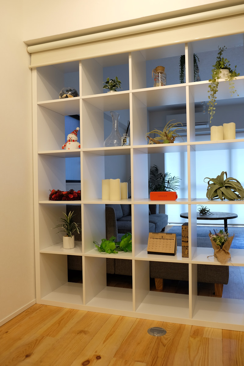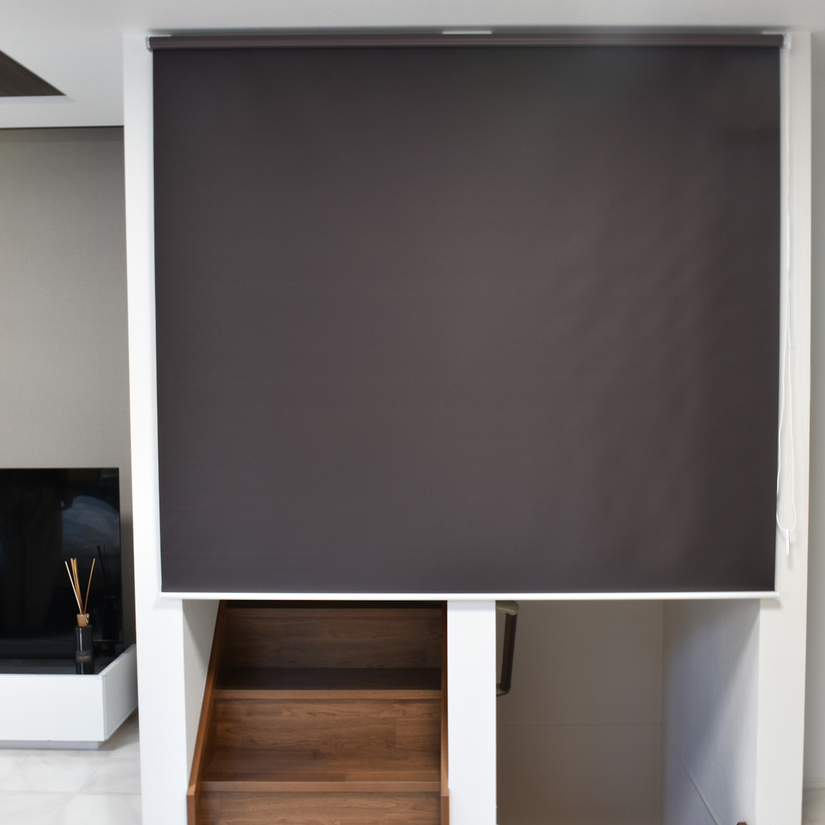 お部屋の間仕切りとして利用したり、リビング階段のあるお部屋の寒さ対策としてもご使用いただけます。スクリーンを下ろすだけで、お部屋がすっきりとした印象になります。急な来客でも安心です。