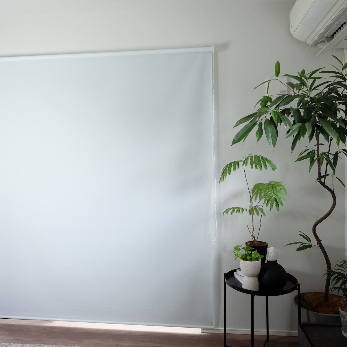 横幅180cmの大判サイズで、掃き出し窓や大きな窓にも1つで対応できます。使わない時は巻き上げてコンパクトに収納可能です。カーテンよりも圧迫感が少なく、空間を広く感じさせる効果があります。
