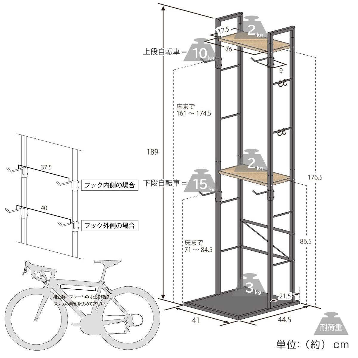 | 注意事項 | ※本製品は屋内専用です ※シティサイクル(一般的なママチャリ)には対応していません |