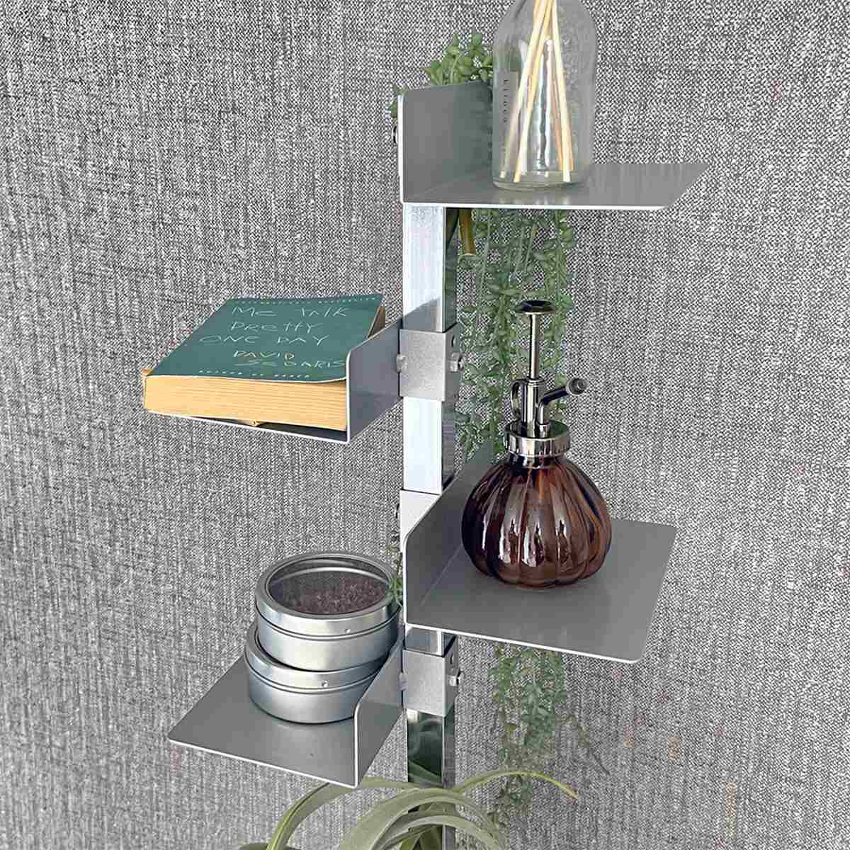 棚板は、置きたいものに合わせて無段階で高さ調節が可能です。正面・左・右の3方向に向けて設置できるため、背の高い花瓶やオブジェのディスプレイも楽しめます。