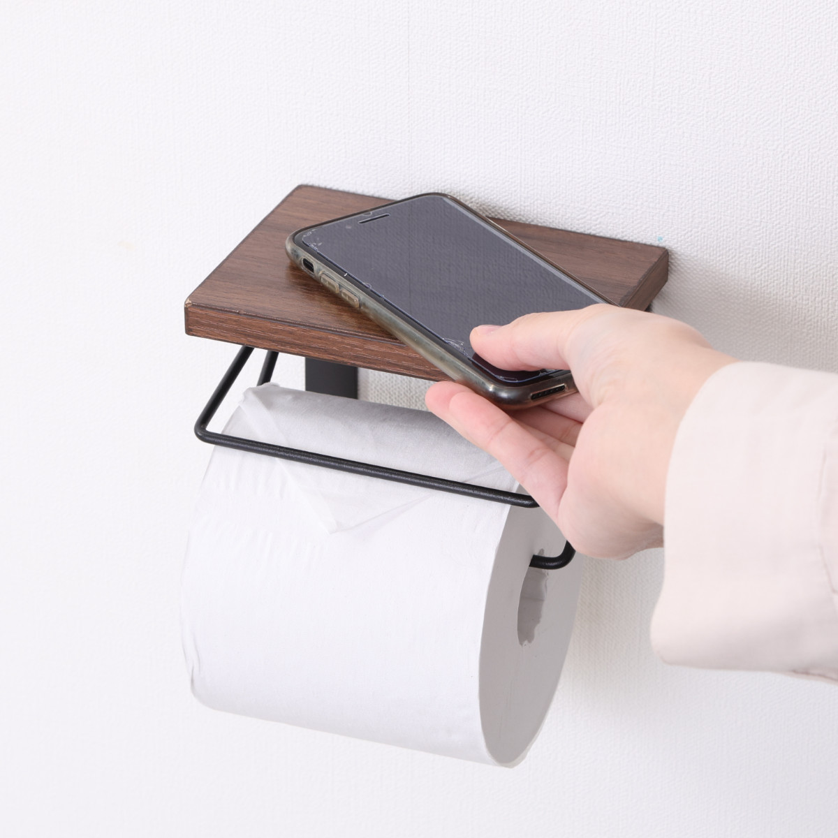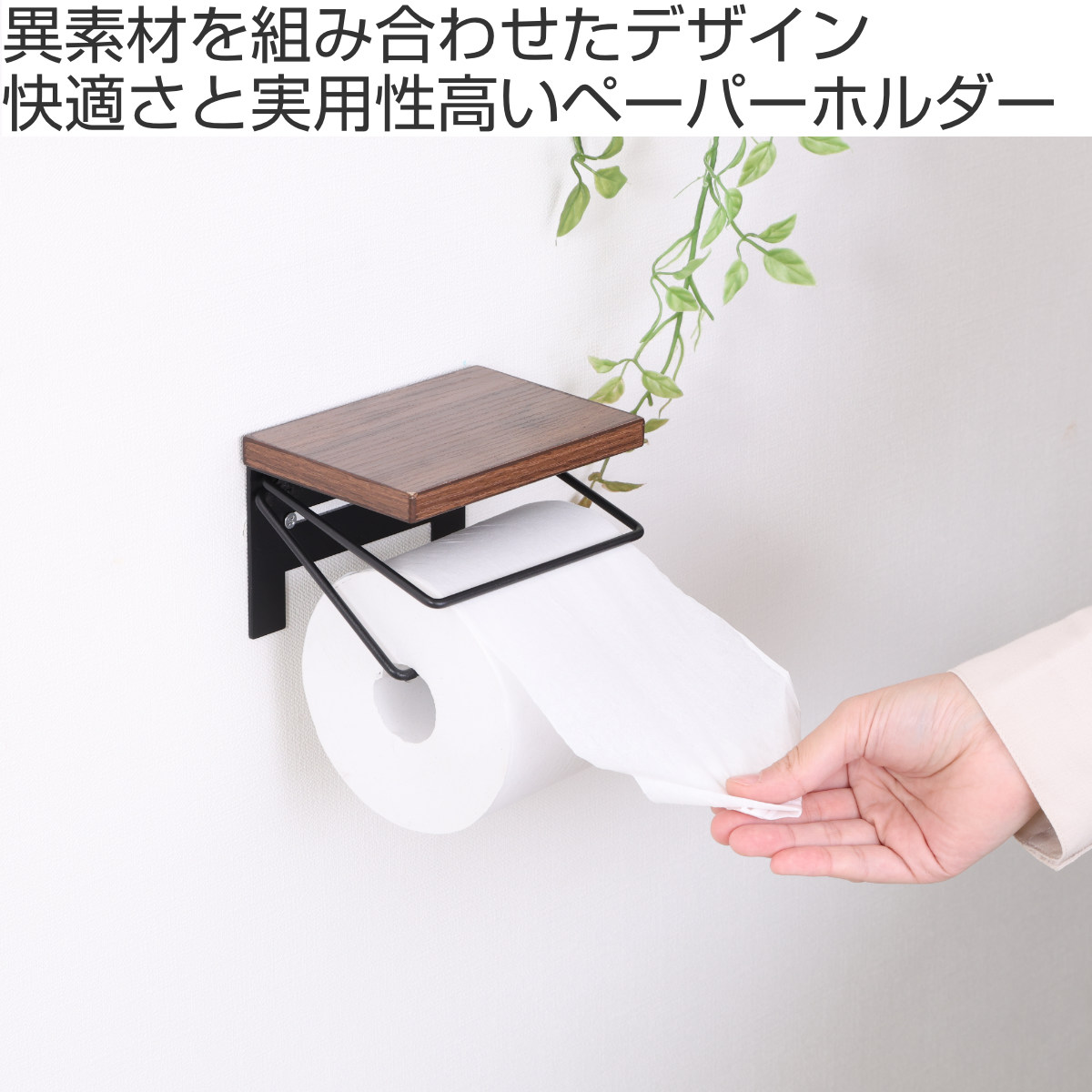 木目×ワイヤーを組み合わせたペーパーホルダー