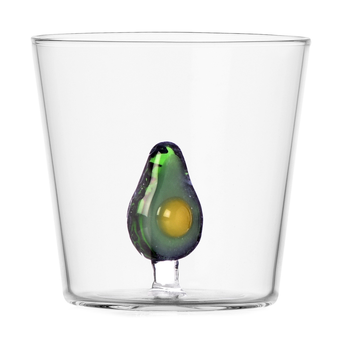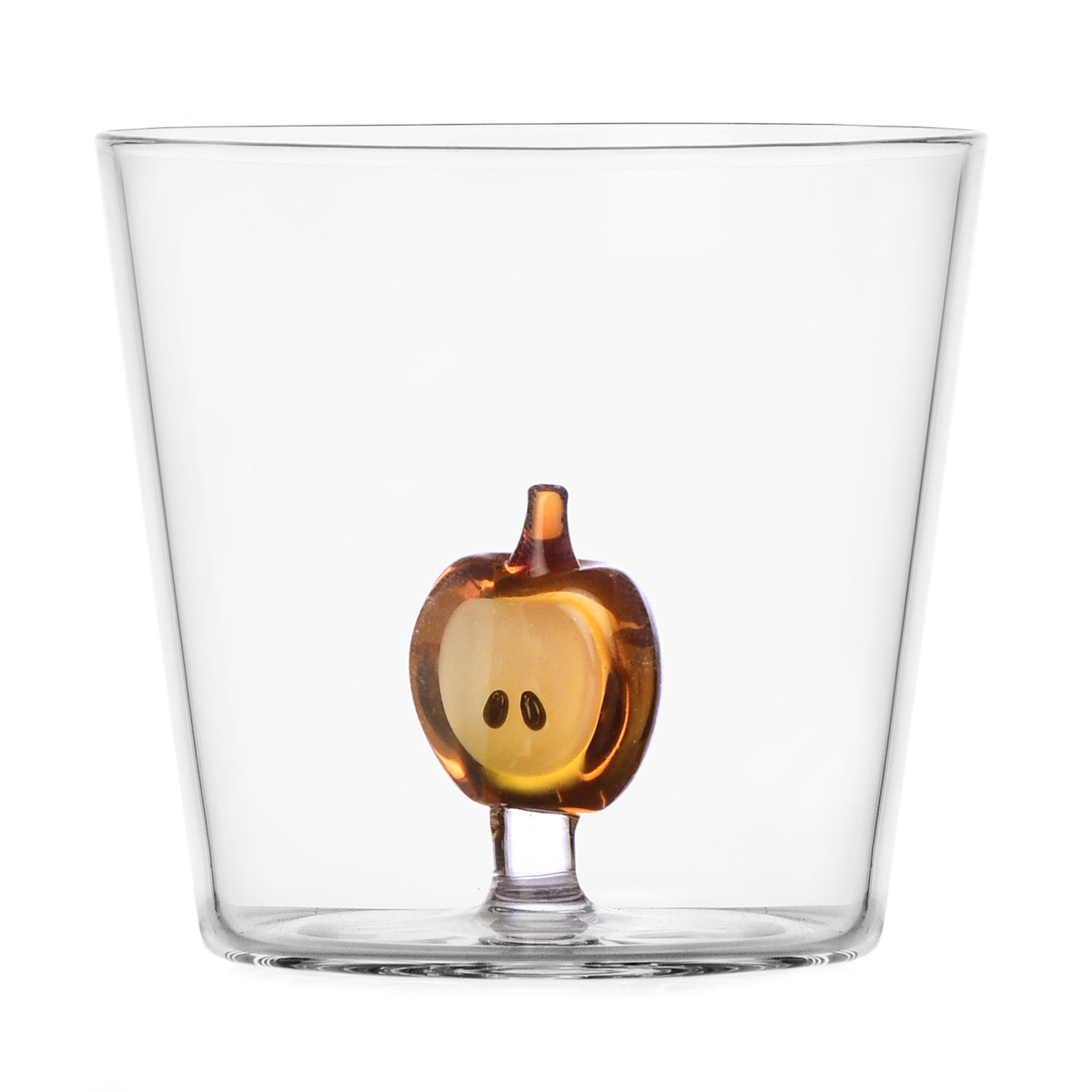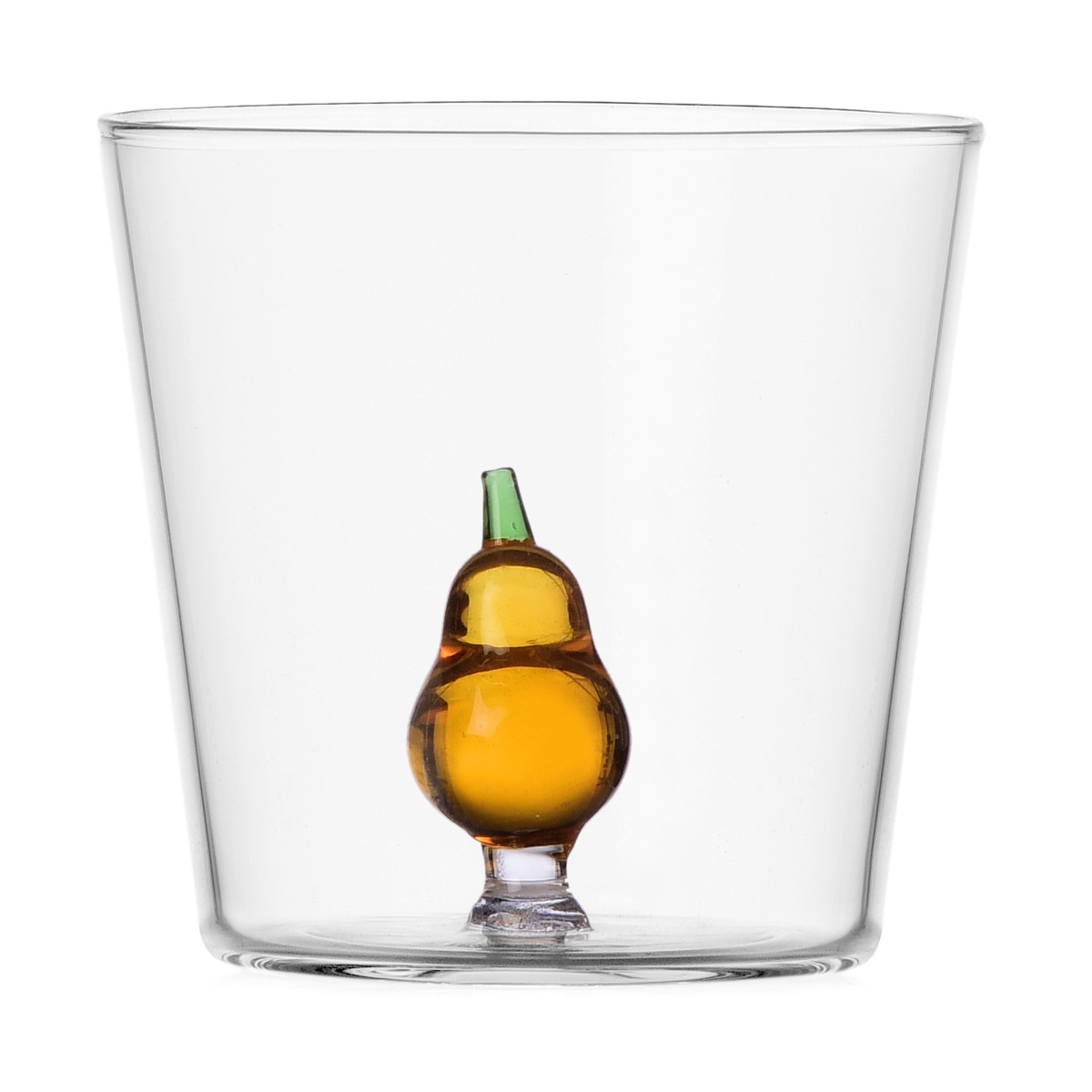 FRUIT&FLOWERSは、ミラノの女性デザイナーアレッサンドラ・バルデレスキによるデザインです。飲み物を注ぐとフルーツがグラスの中で浮かんでいるように見え、テーブルに遊び心を与えます。水やジュース、アイスティーなど幅広い飲み物に使いやすいです。