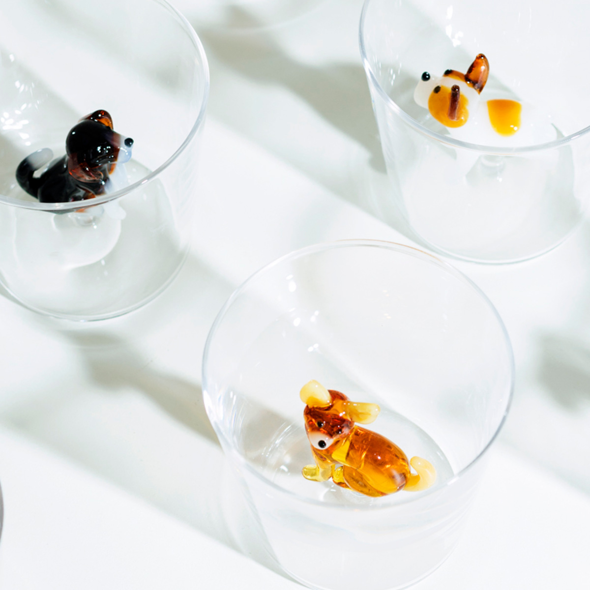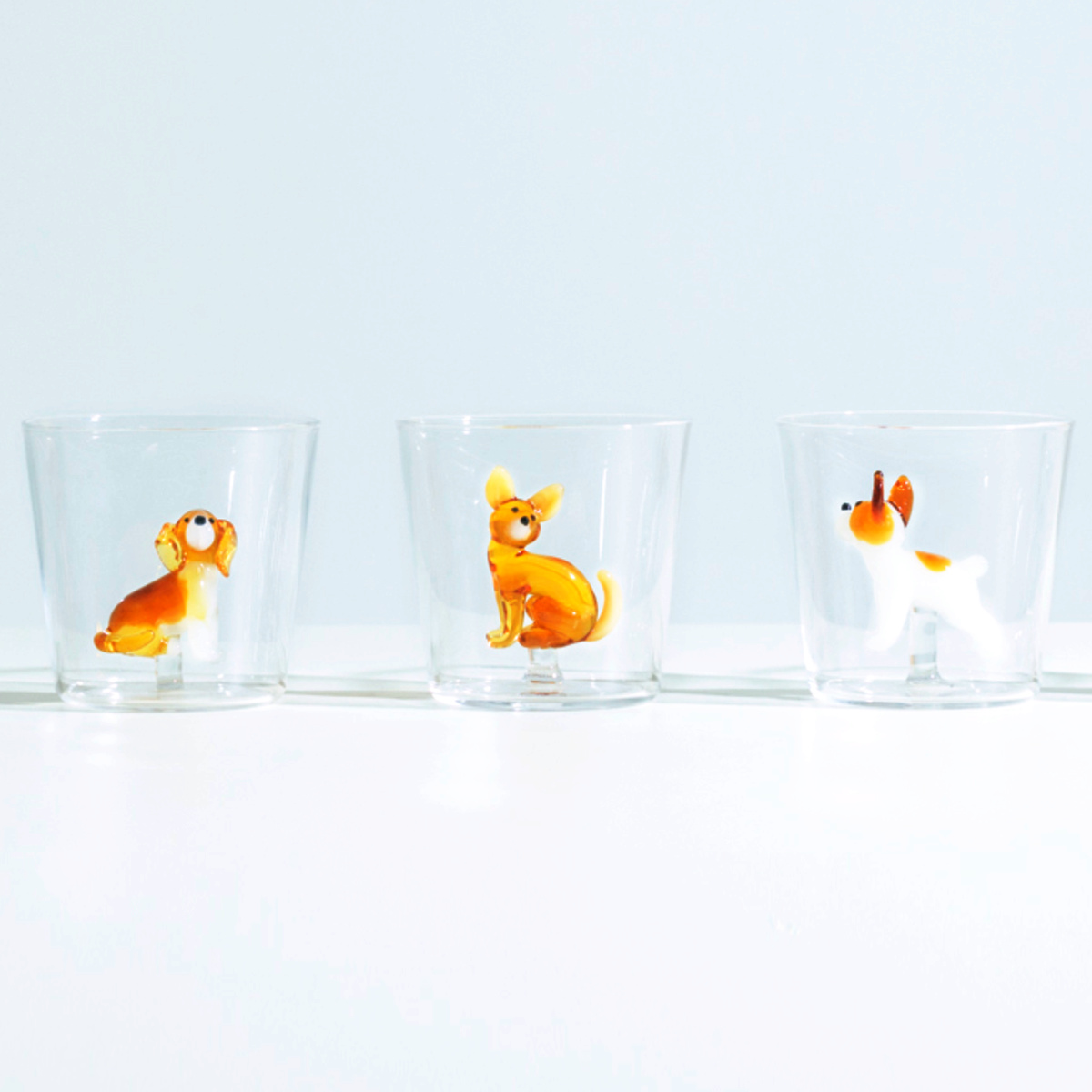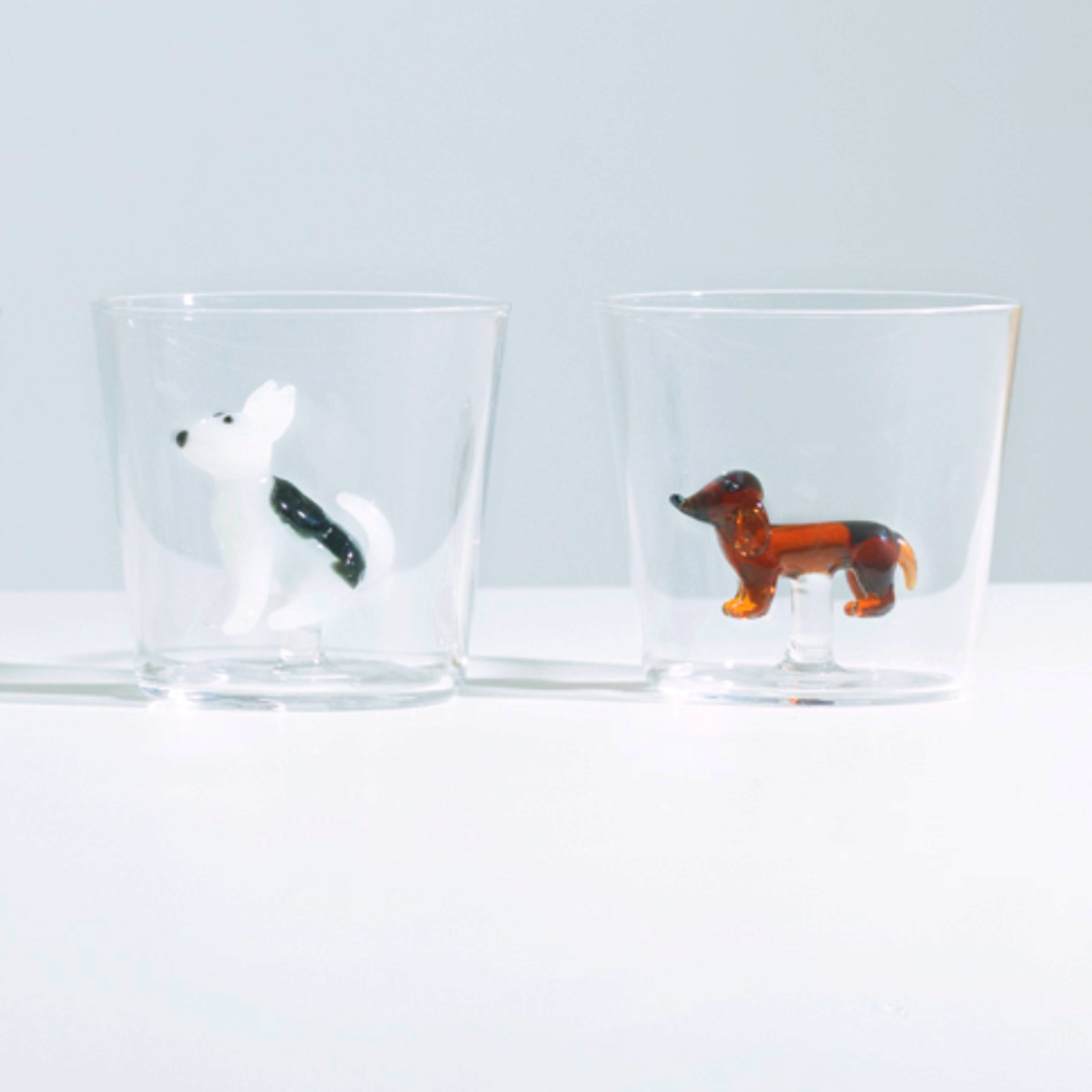 透明度の高い耐熱ガラスを使用しています。タンブラーの中はイヌたちが立体的に表現されています。