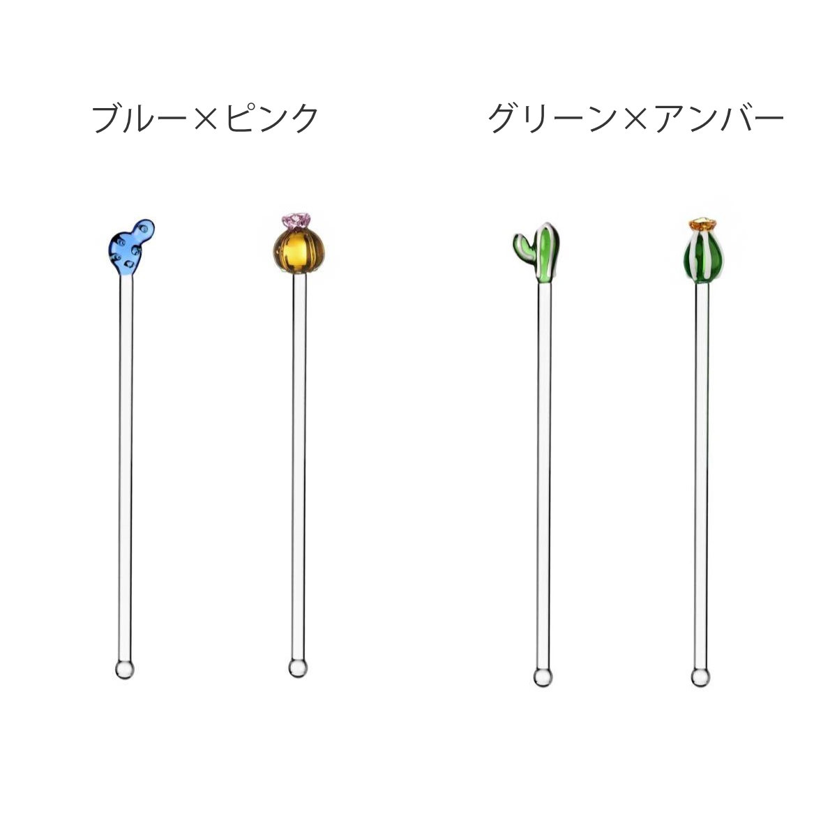 透明ガラスの先端に、カクタス(サボテン)グリーンやアンバーフラワー(花)のモチーフが立体的にあしらわれたデザインです。日常使いはもちろん、誕生日やお礼、ちょっとした贈り物にもぴったりです。ティータイムを楽しむギフトとしても喜ばれるアイテムです。