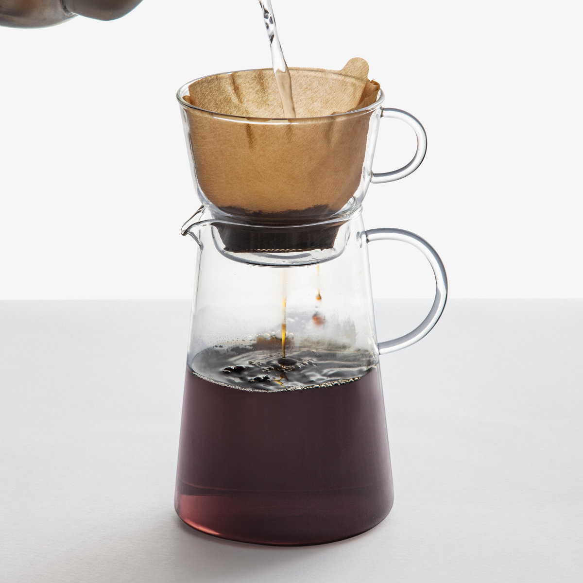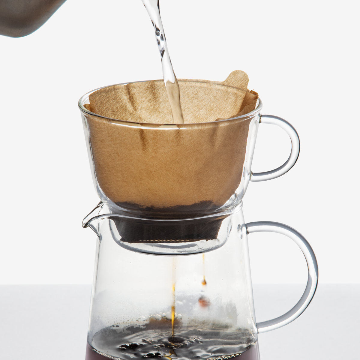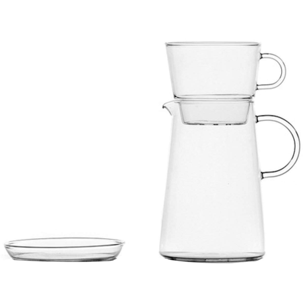 ドリップポット、フィルター、受け皿のセット商品です。透明ガラス製で、コーヒーを淹れる工程の美しさも楽しめます。一度に数杯分のコーヒーを淹れられる実用的なサイズです。家族や来客時にも余裕をもって使え、毎日のコーヒータイムを快適に楽しめます。