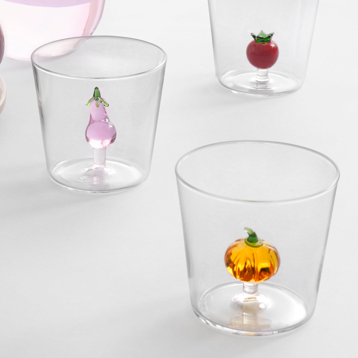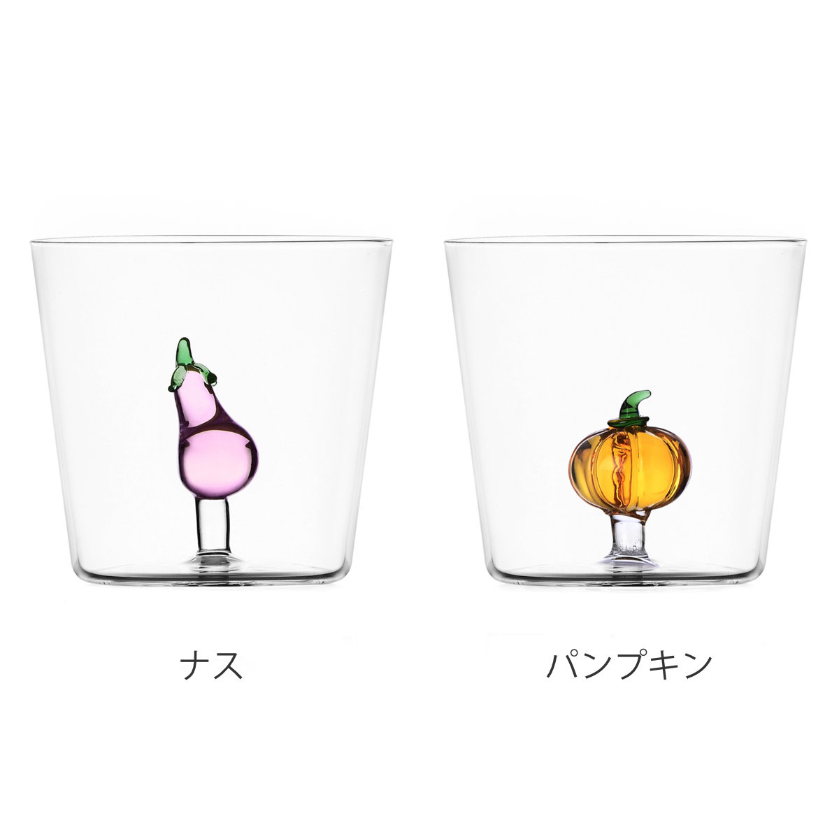 VEGETABLESは、ミラノの女性デザイナーアレッサンドラ・バルデレスキによるデザインです。飲み物を注ぐとベジタブルがグラスの中で浮かんでいるように見え、テーブルに遊び心を与えます。水やジュース、アイスティーなど幅広い飲み物に使いやすいです。