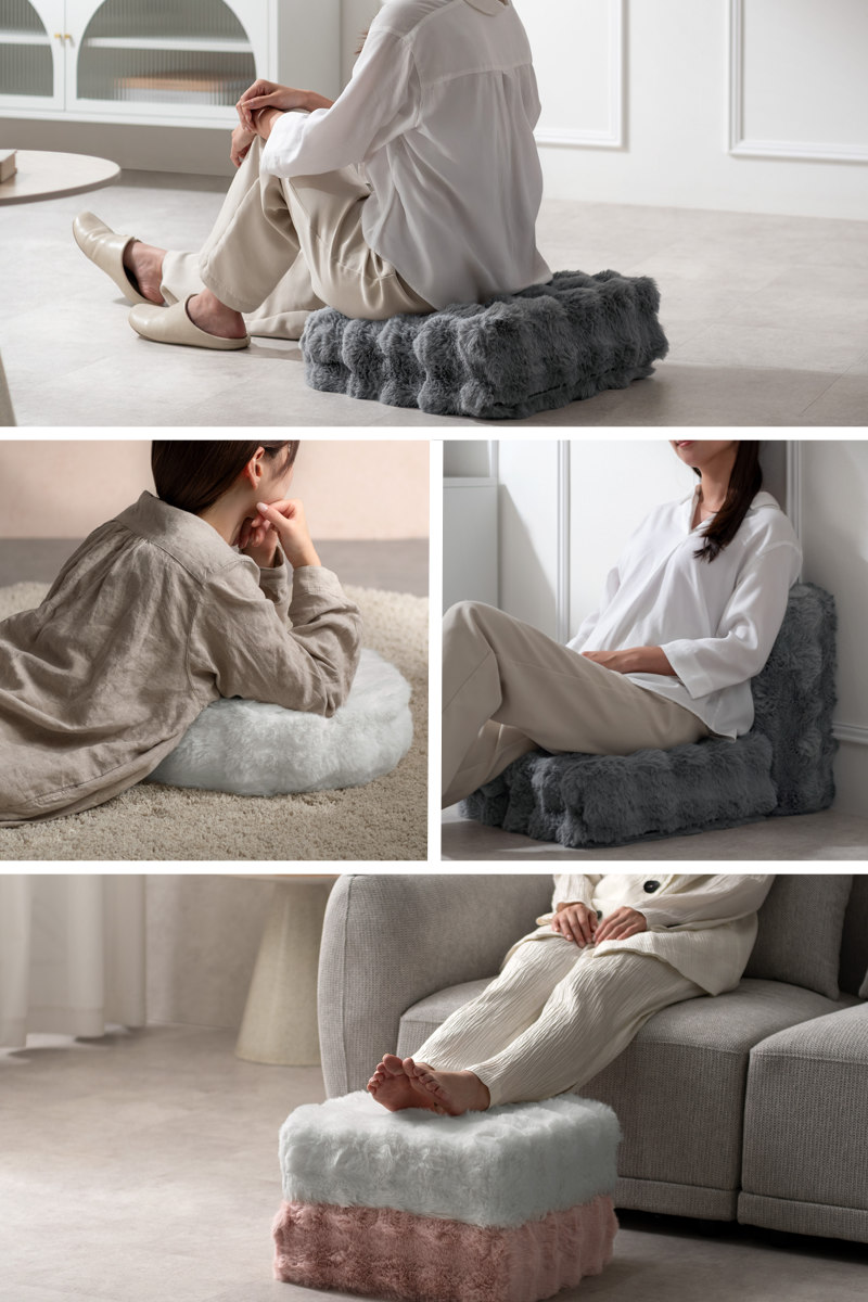 床に座る際のあぐらクッションとしてはもちろん、肘置きとしても活躍。2個並べて使えば、背中をやさしく支える背もたれクッションとしてもお使いいただけます。さらに、足をのせてオットマン代わりにするなど、使い方は自由自在。シーンやくつろぎ方に合わせてアレンジでき、毎日のリラックスタイムをより快適にしてくれます。