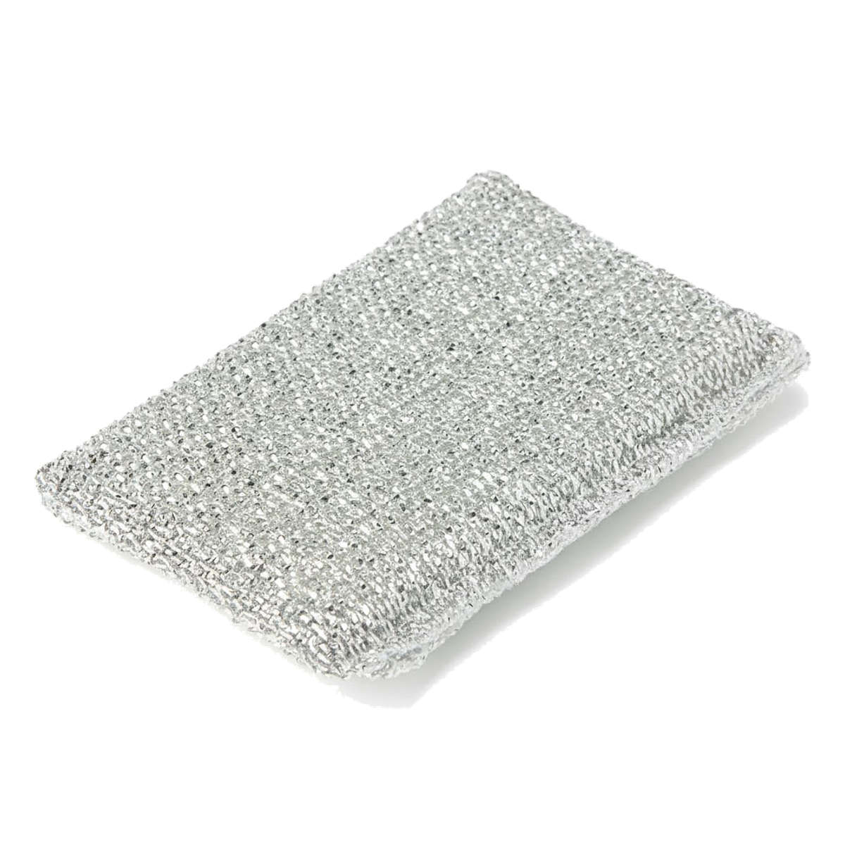ポリエステルフィルムに高純度アルミ微粒子を真空蒸着した特殊加工により、アルミの細かな粒子が汚れをすばやく落とします。少量の洗剤でもしっかり洗えるのが魅力のスポンジです。