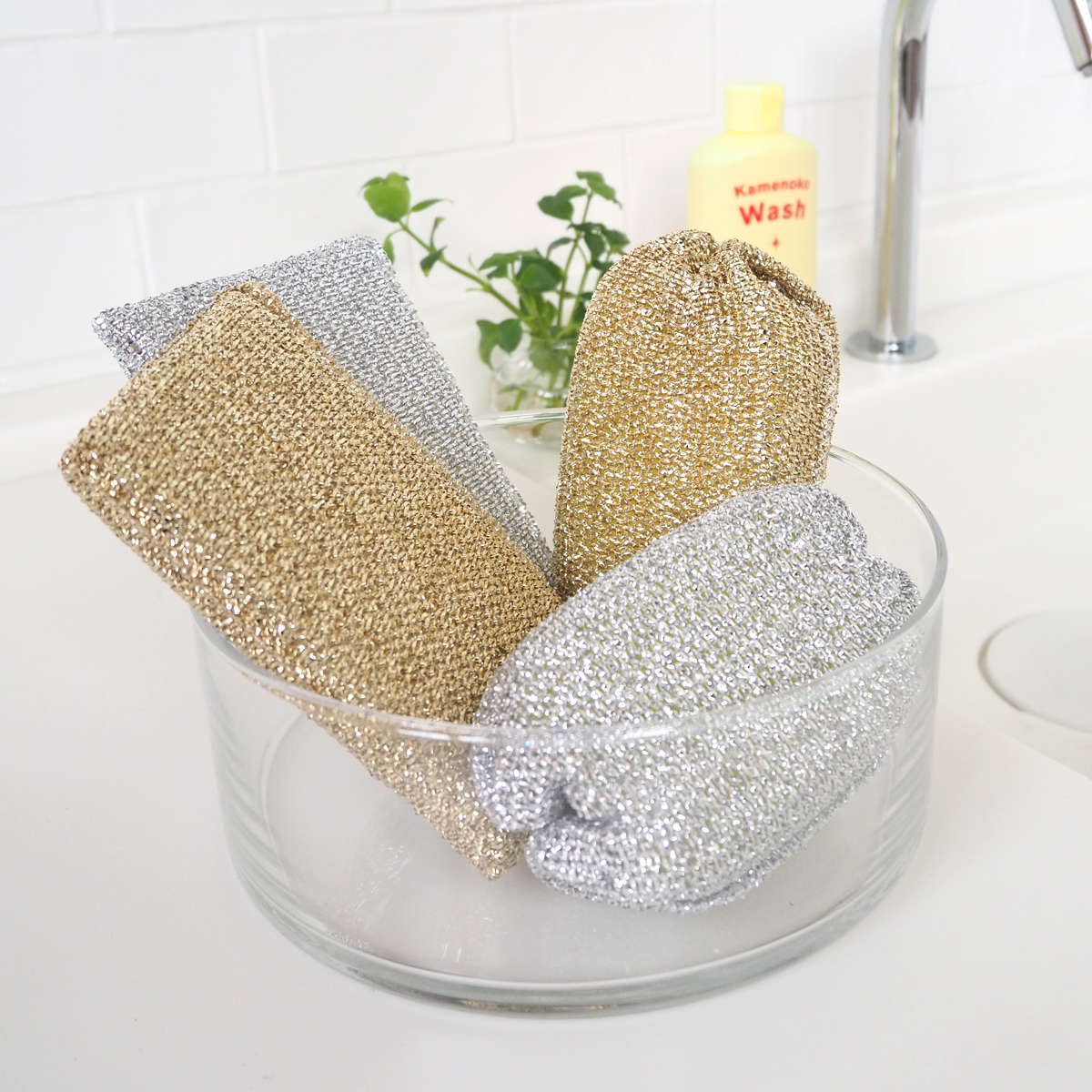 コーティング加工の食器やプラスチック、琺瑯、せともの、ガラスなど、デリケートな素材にも使いやすく、傷がつきにくいのが特徴です。強くこすりたいけれど傷はつけたくない場面にぴったりです。