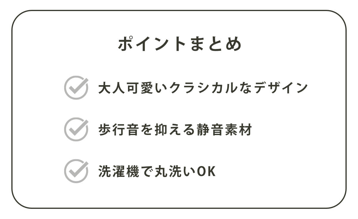 ●歩くときのパタパタ音も抑える静音仕様です。