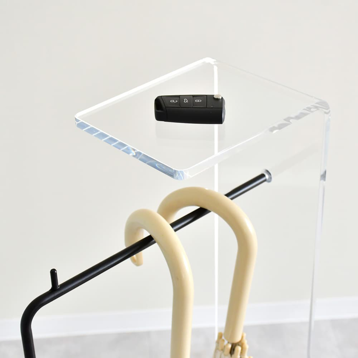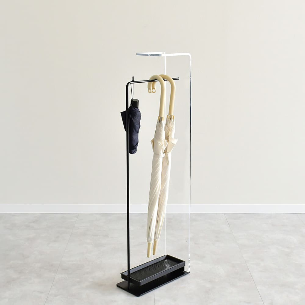 bokula Acrylic アンブレラハンガーは、ミニマルな美しさと使いやすさを兼ね備えた玄関用アンブレラハンガーです。10mm厚の高透明アクリルを使用した支柱と一体成形の曲げ加工が、空間にさりげない存在感を与えます。圧迫感のない透明感で、洗練された玄関にすっとなじみます。家族や来客を迎える玄関を、自分らしい美意識で整えたい方に。毎日の暮らしに、静かに寄り添う一台です。