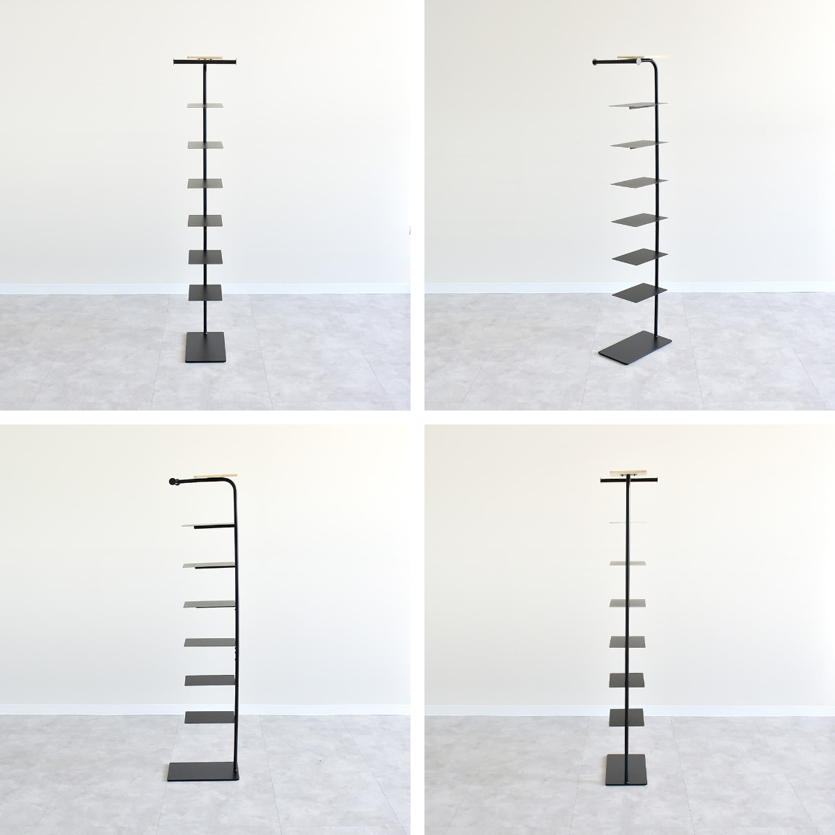 棚板4枚タイプ:スリムに置きたい方や、靴以外にも傘や小物を置きたい方に最適です。玄関の動線を邪魔せず、すっきり整理できます。