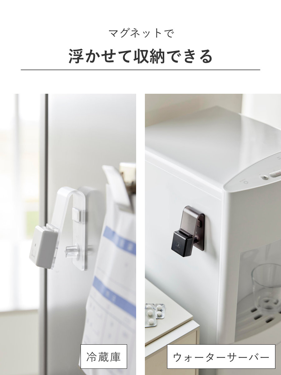 マグネットで浮かせて収納できるので、冷蔵庫の横やウォーターサーバーの横など、手に取りやすい場所に設置すれば、探す手間も省けてお薬タイムがよりスムーズになります。