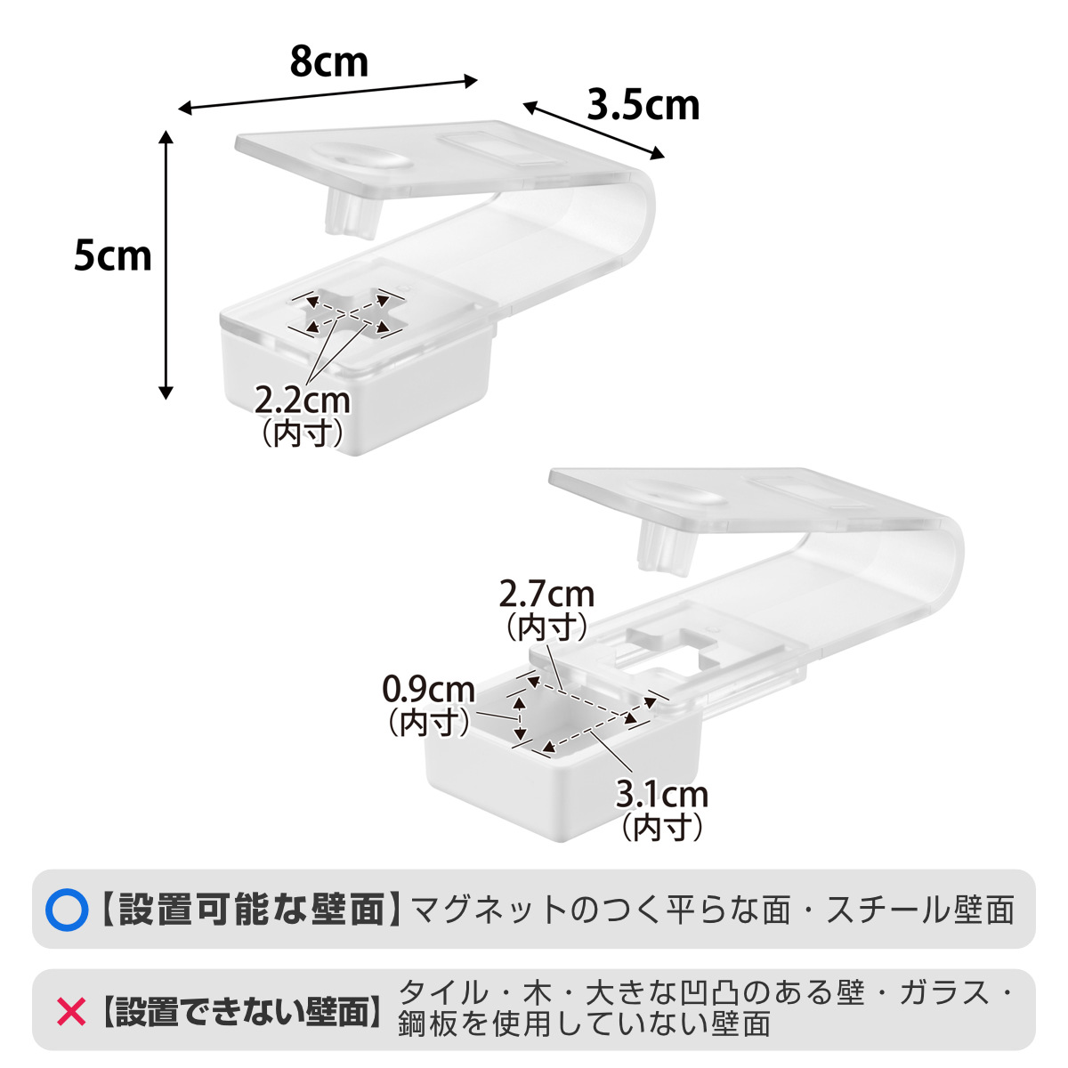 | 備考 | 【マグネットで設置可能な面】 マグネットがつく凹凸のない平らな面・スチール面 |