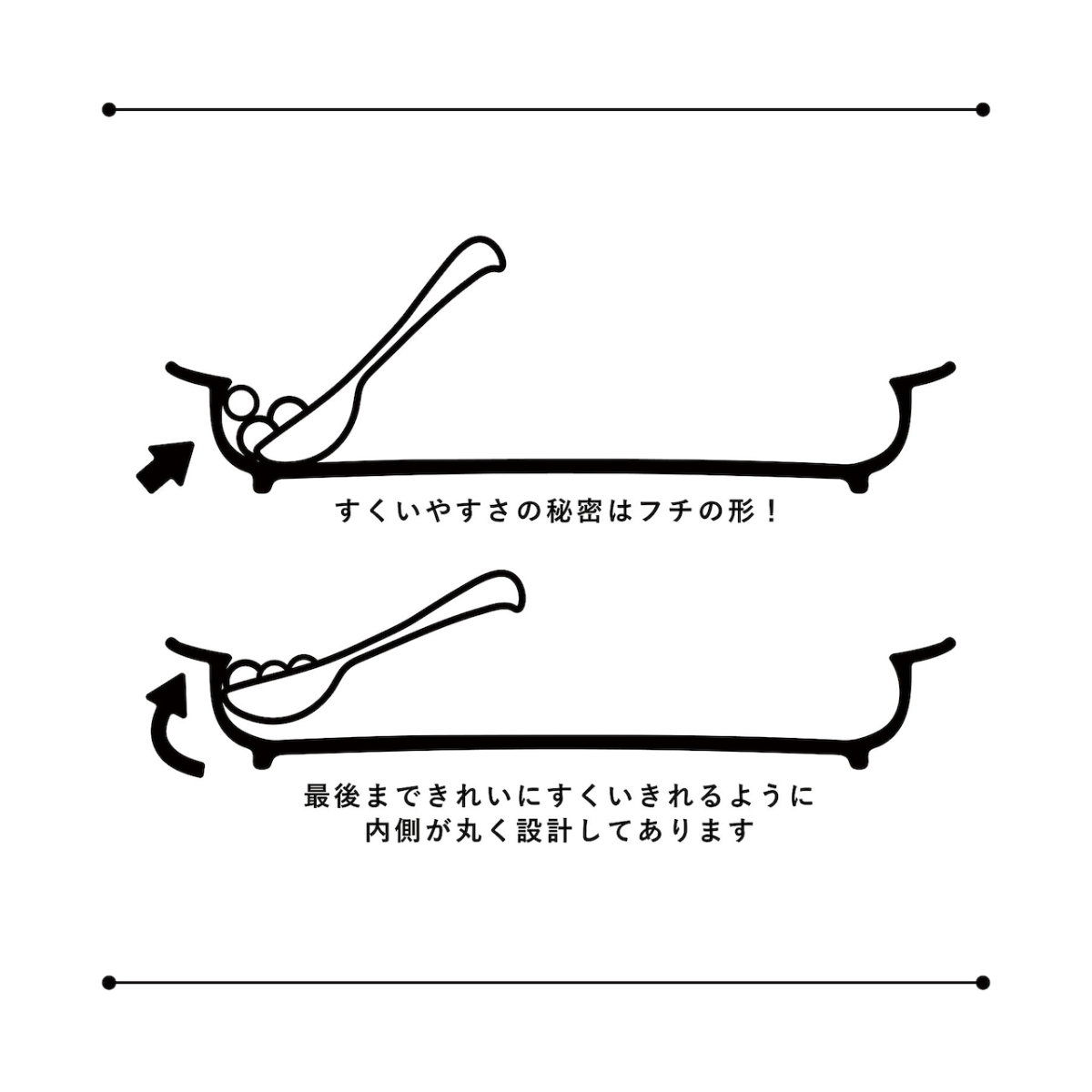 ●フチの内側を丸く設計し、最後の一口まできれいにすくえます。
