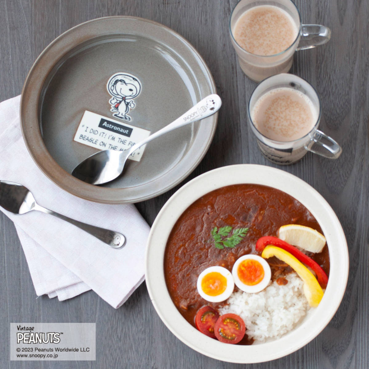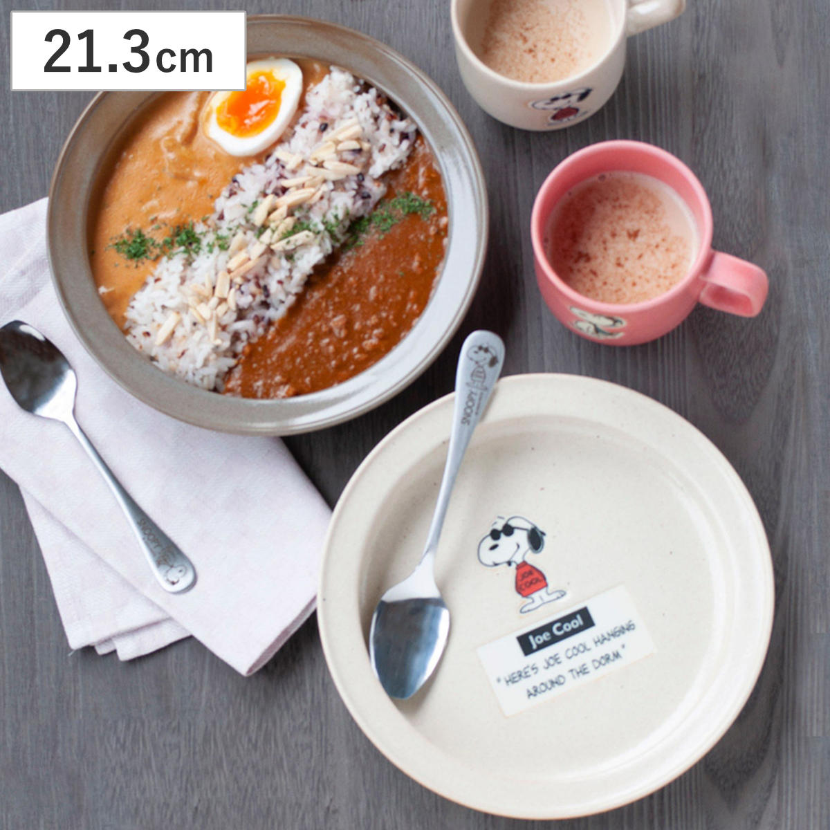 スヌーピーのなりきり人気キャラクター「ジョークール」と「アストロノーツ」などがそれぞれ描かれたシリーズ。どこか懐かしいアメリカンな雰囲気が、食卓をおしゃれに演出します。カレー皿とスプーンを展開しており、シリーズで揃えることで統一感のあるコーディネートを楽しめます。