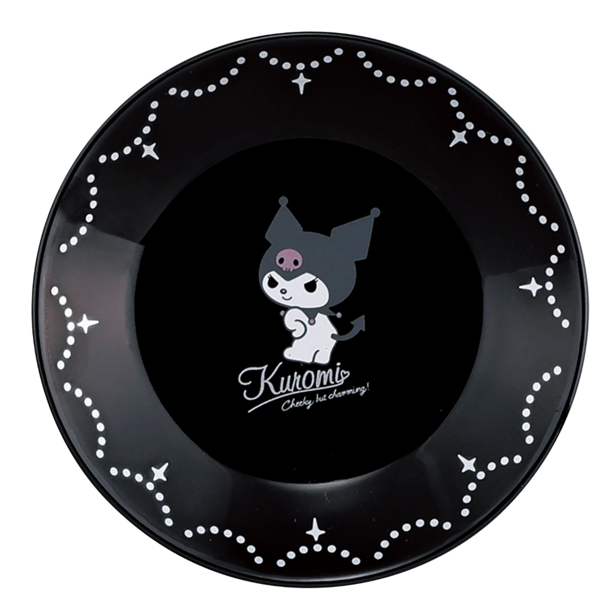 クロミのかわいいデザインのプレートです。ブラックを基調としたスタイリッシュなデザインがキッチンを楽しく彩ります。取り皿としてはもちろん、お菓子やデザート用にちょうどよい13.5cmサイズです。クロミ好きな方へのプレゼントにもおすすめです。