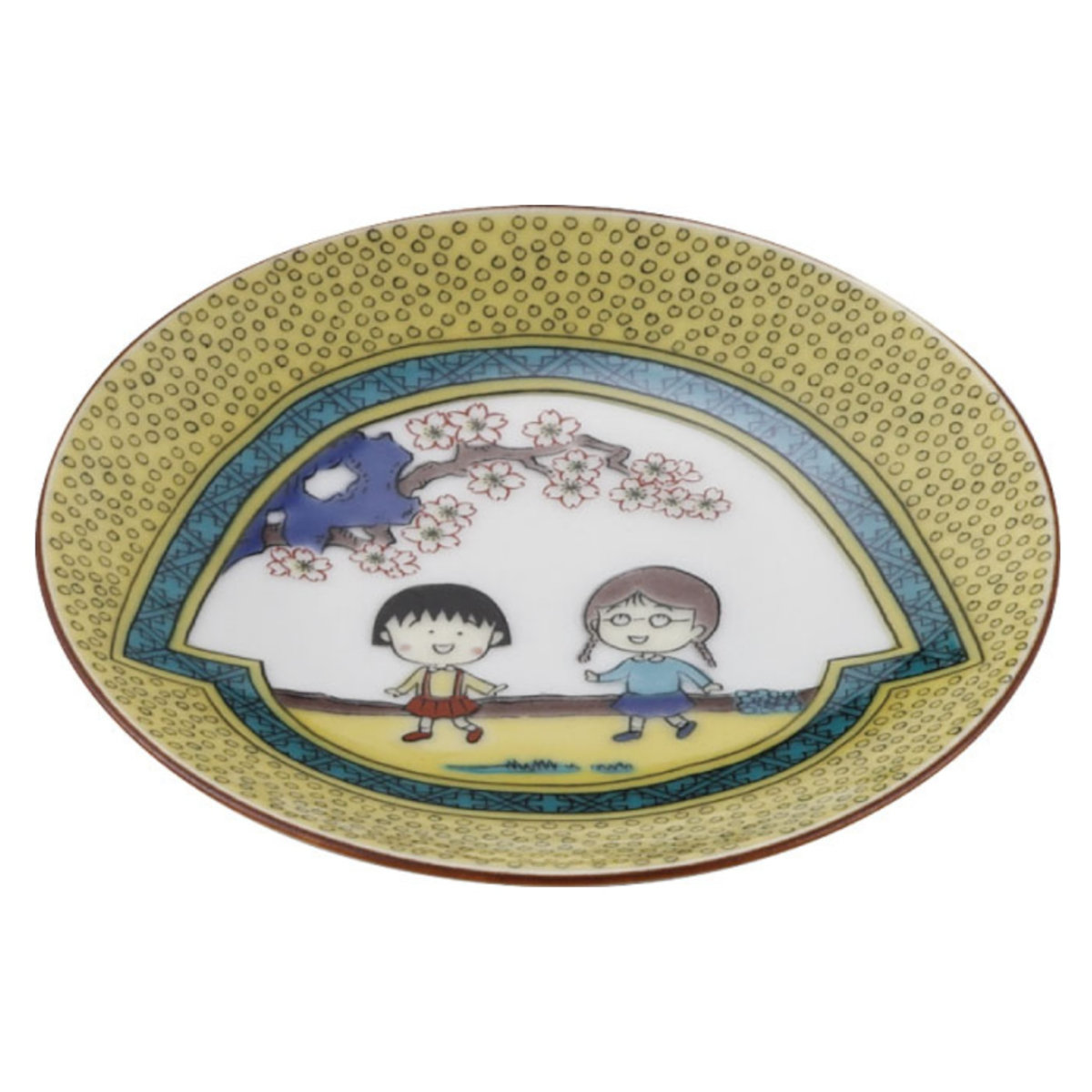 日本の伝統的な焼き物のひとつ、九谷焼で仕上げた豆皿です。1990年にテレビアニメ放送がスタートしてから35年を迎えた「ちびまる子ちゃん」の世界観を、繊細な絵付けで表現しました。お醤油皿や副菜用の小皿としてはもちろん、飾って楽しめるコレクションアイテムとしてもおすすめです。