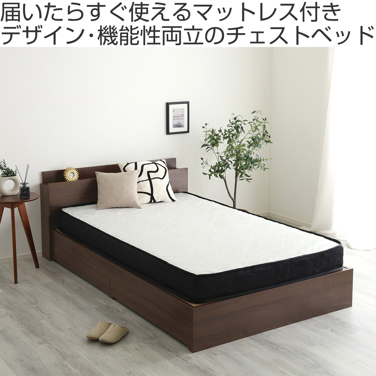 棚、コンセント付きベッドとポケットコイルマットレスのセット