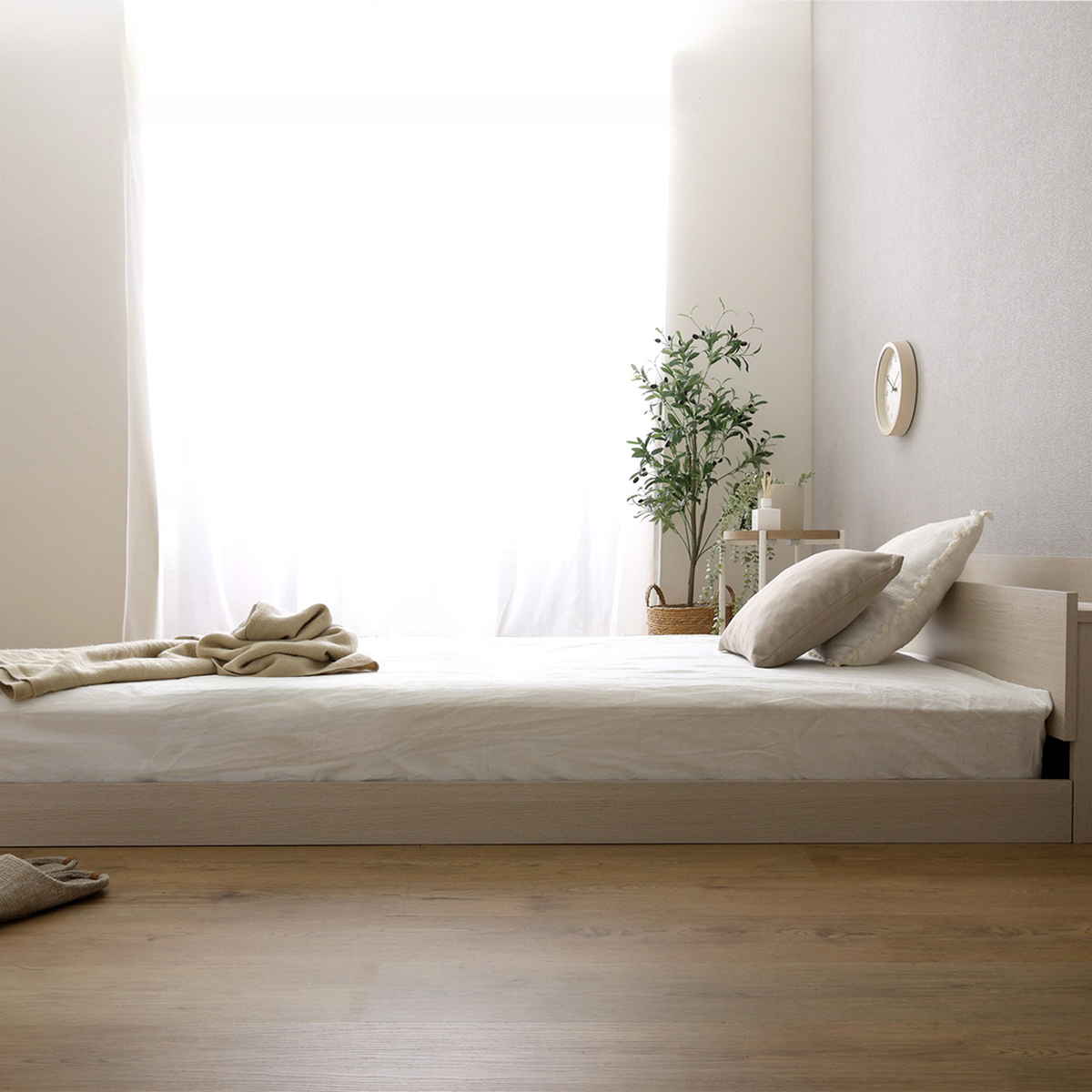 床に近いボックス型のフロアベッド仕様で、圧迫感が少なくお部屋が広く見えるロースタイルデザインです。天井までの空間が広がることで、お部屋の印象がすっきりと整い、落ち着いたリラックス空間をつくります。