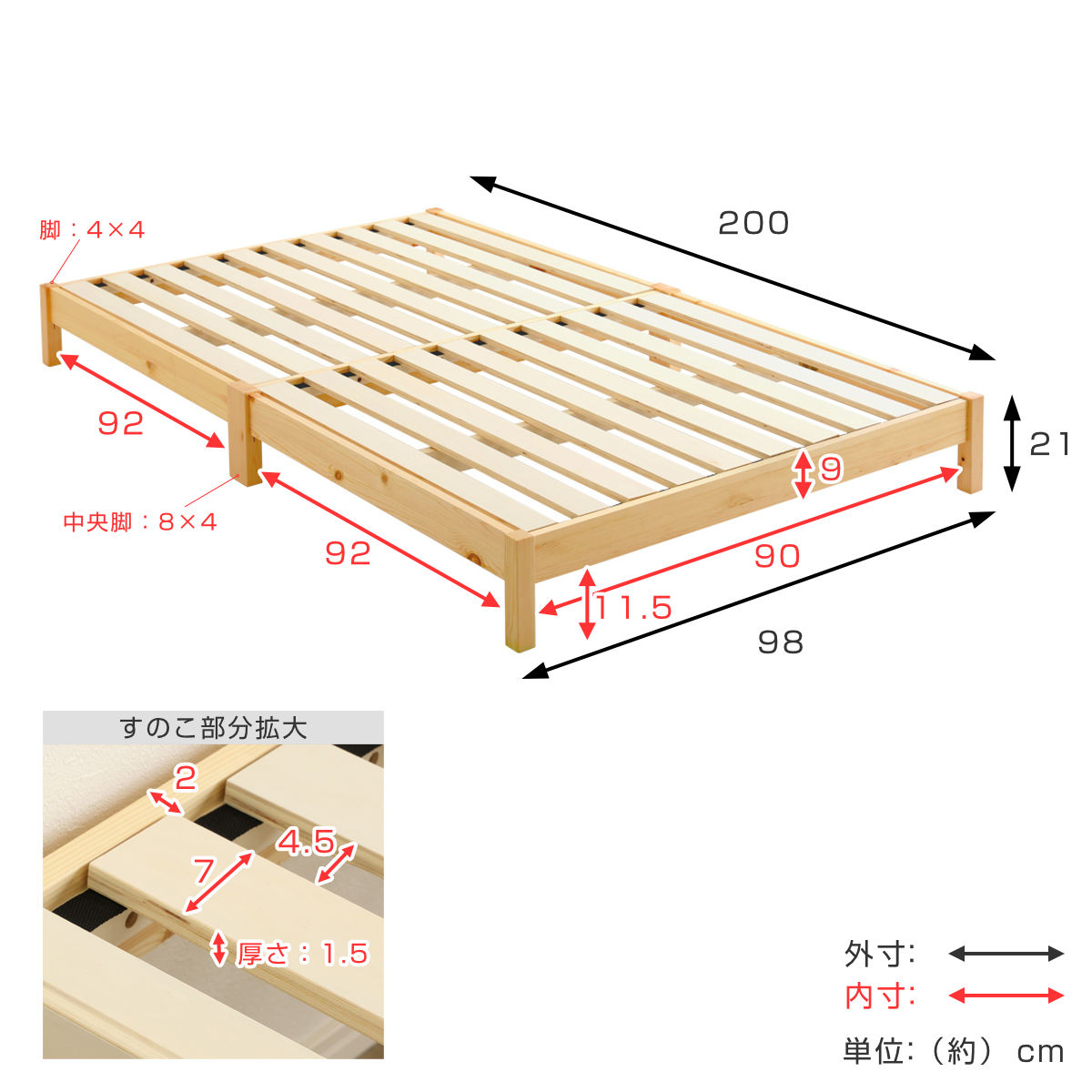 | 材質 | フレーム・脚部:天然木パイン(ラッカー塗装) すのこ:LVL積層合板 |