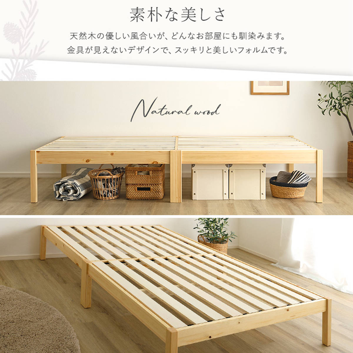 | 注意事項 | ※天然木を使用しているため、1点1点色合いや風合いが異なります ※マットレスは付属しておりません ※商品ページ内には別の商品を含む画像を使用しています |