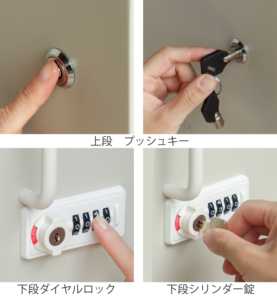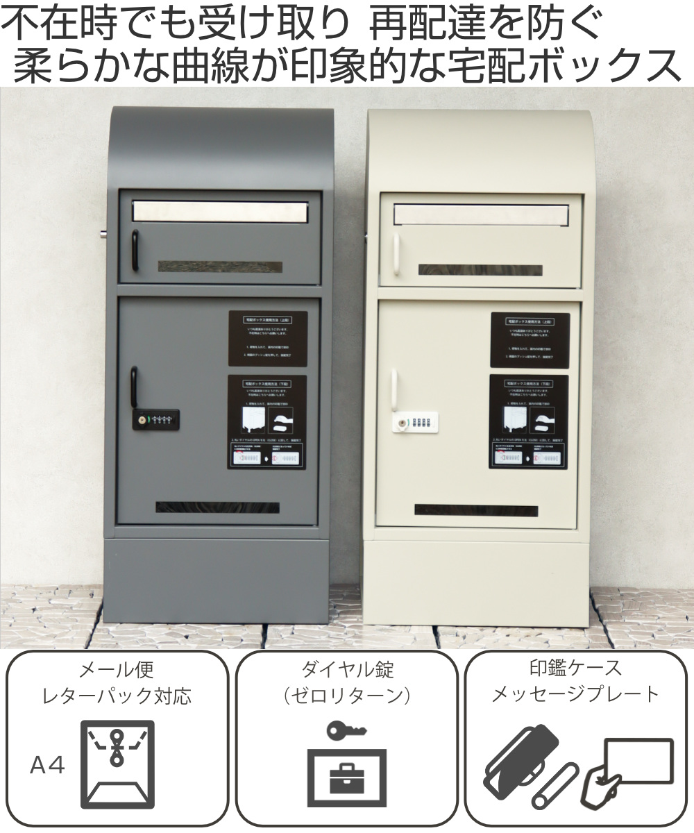 プッシュキーとダイヤルロック付きで盗難や、第三者によるいたずらを防ぎ、個人情報が含まれる書類や大切な荷物も安心して受け取れます。