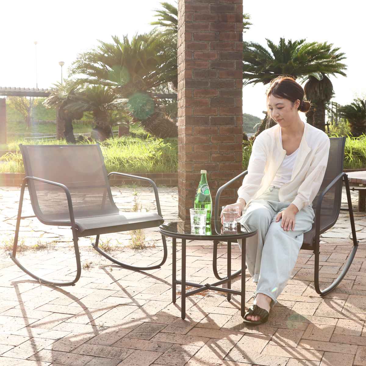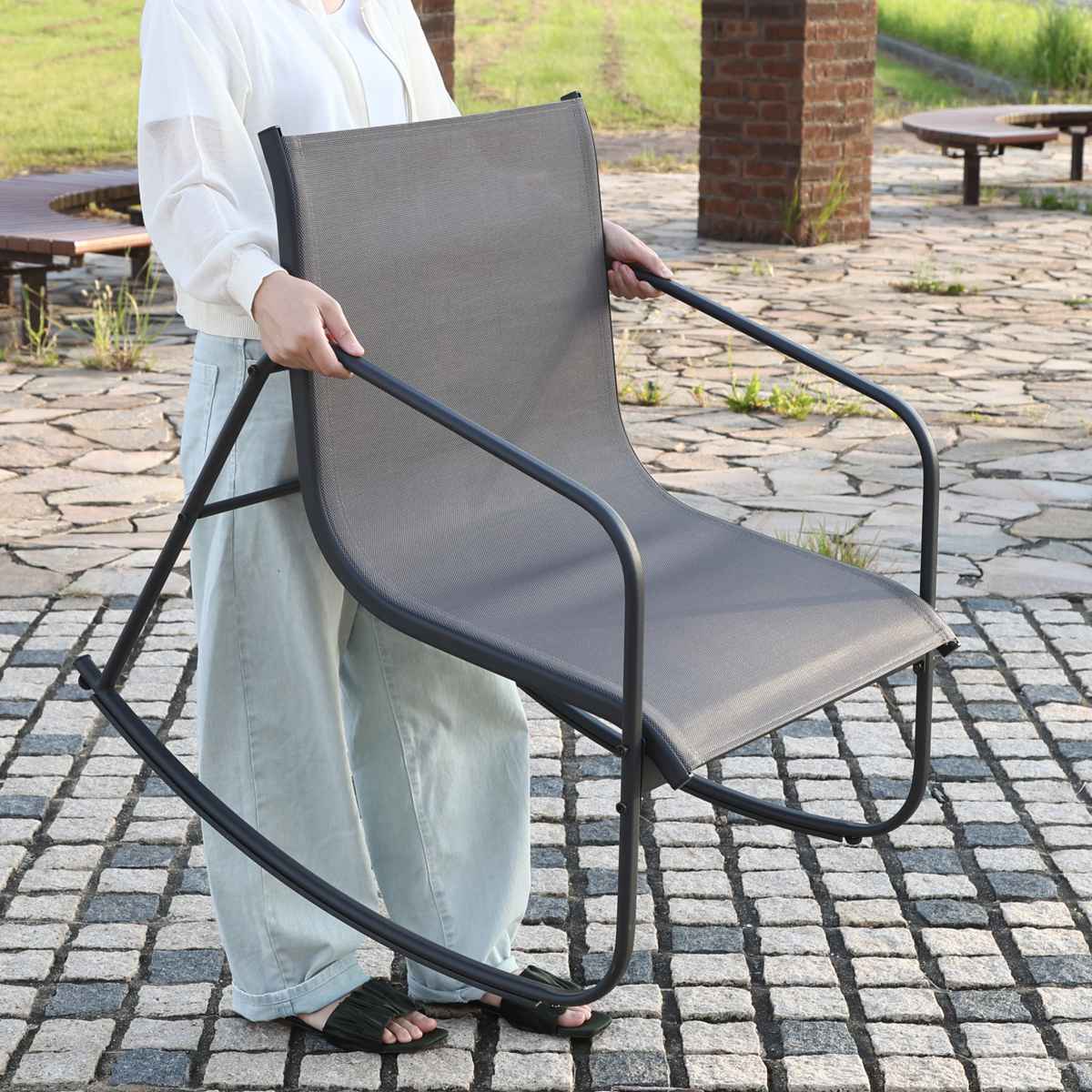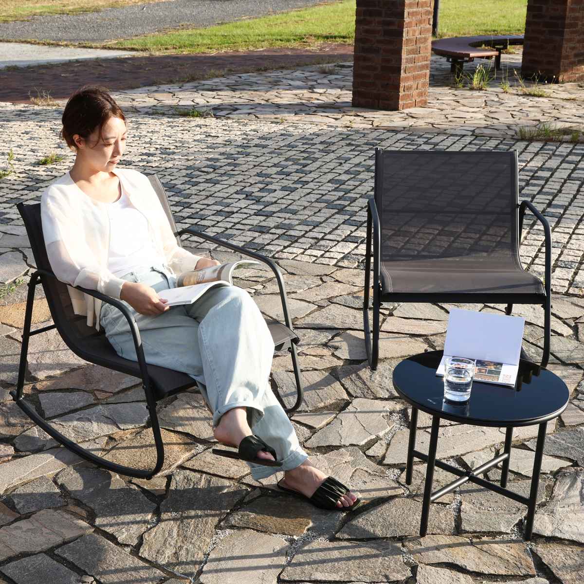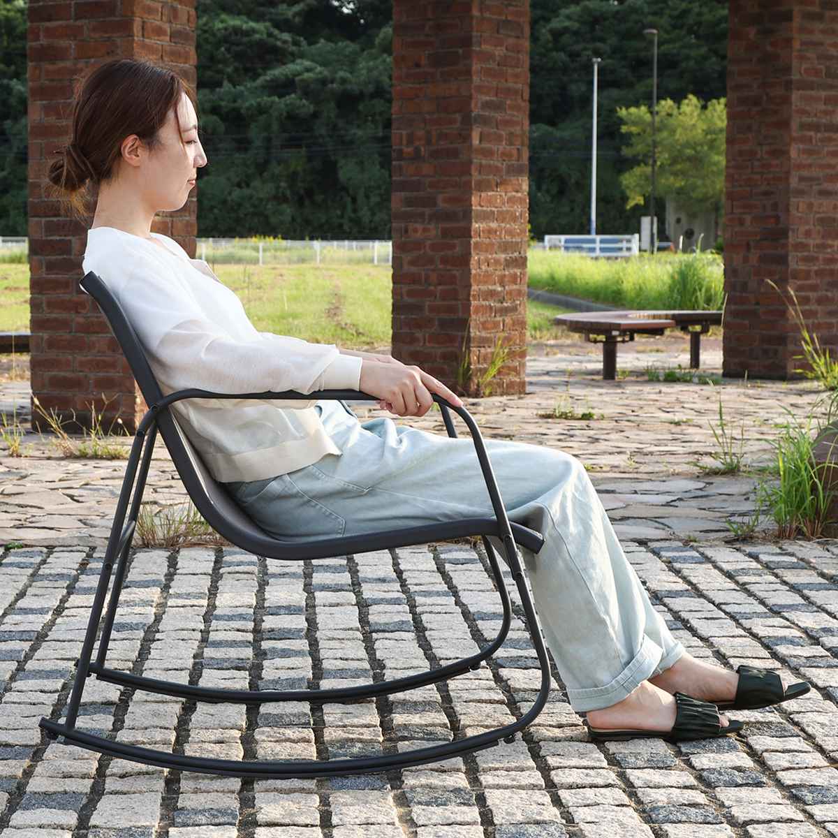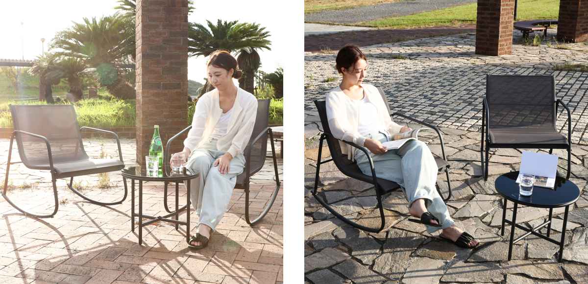 持ち運びしやすいチェアは、単体でも使用できます。お庭やテラス、リビングなどに屋内外問わず自由に設置できて、あっという間にくつろぎ空間を作ります。