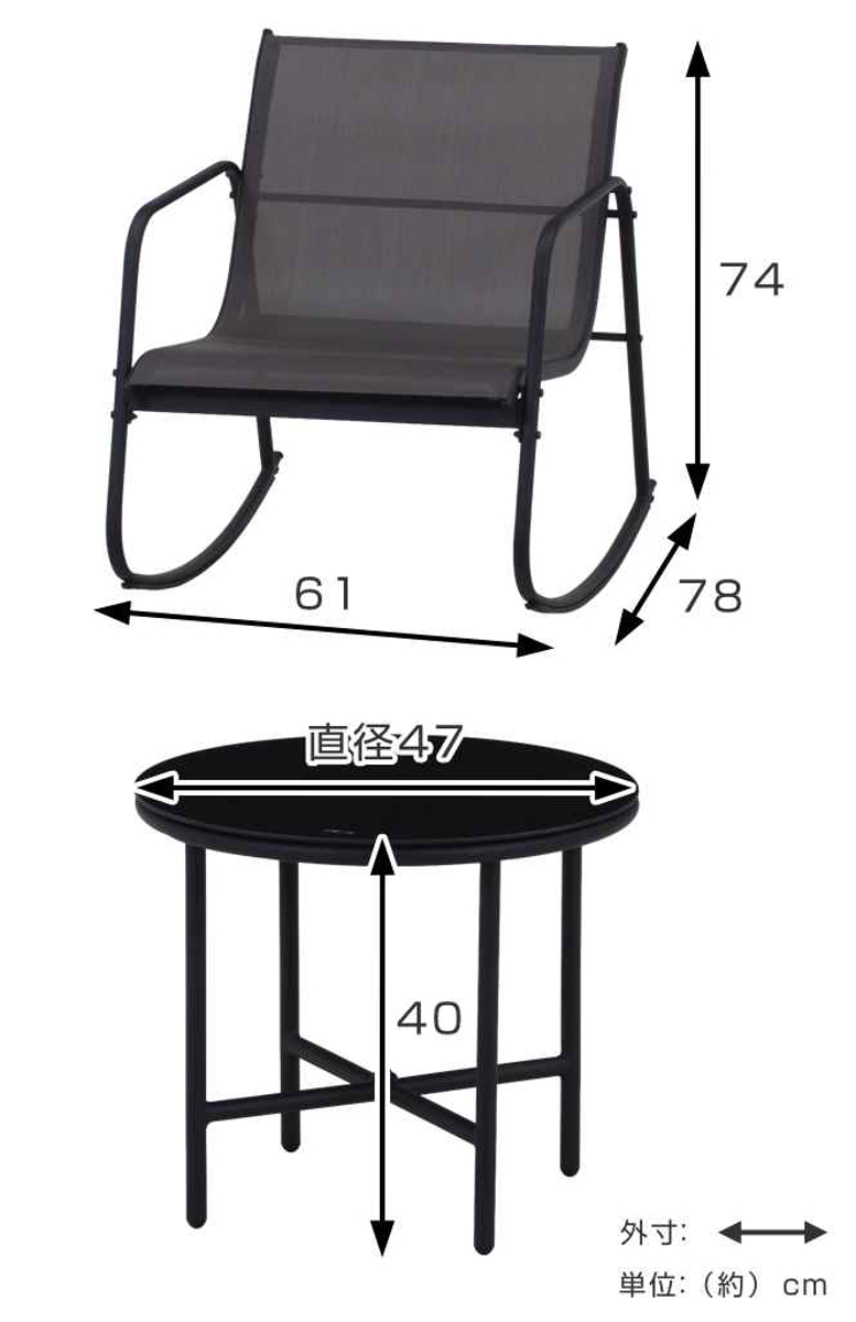 | サイズ | チェア:約 幅61×奥行78×高さ74cm テーブル:約 直径47×高さ40cm |