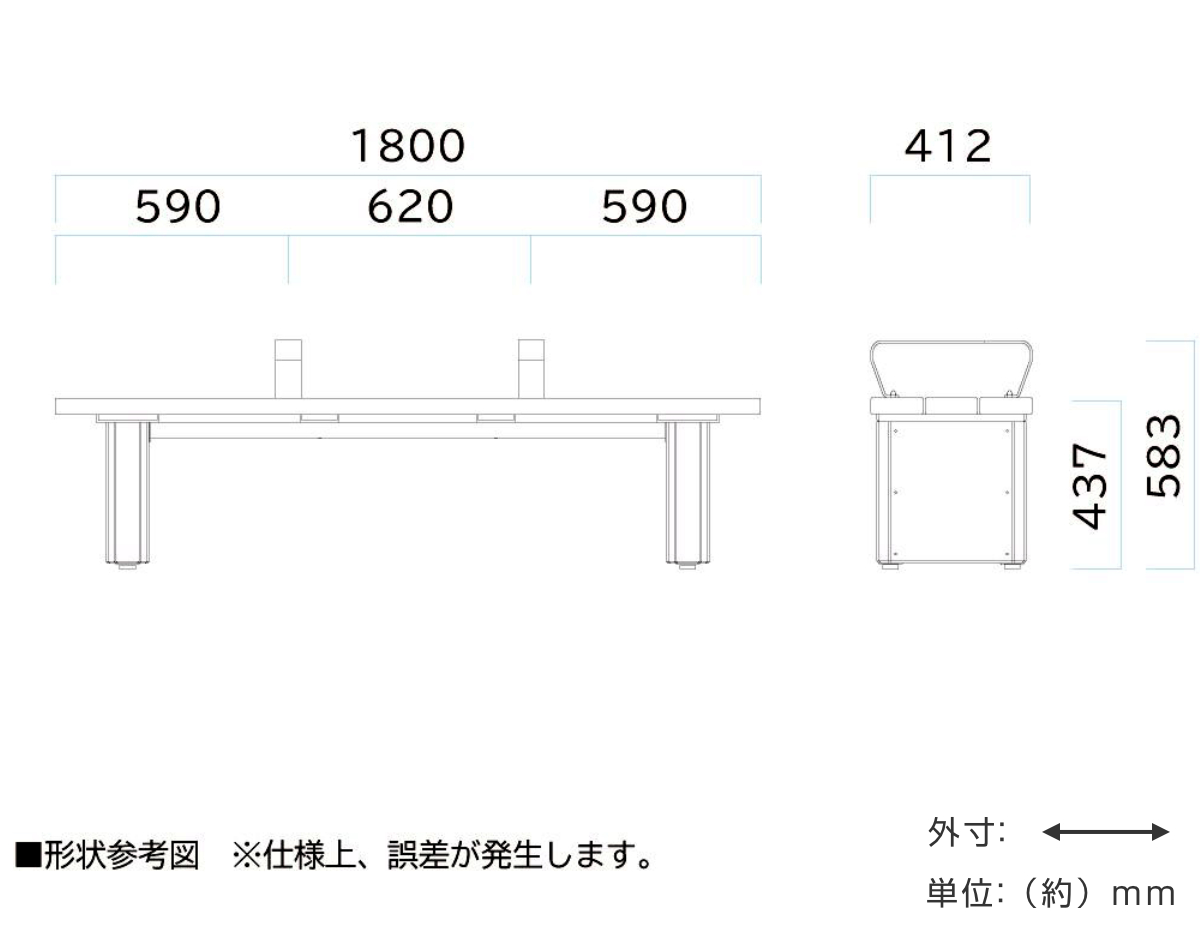 - 約幅180×奥行41.2×高さ58.3cm