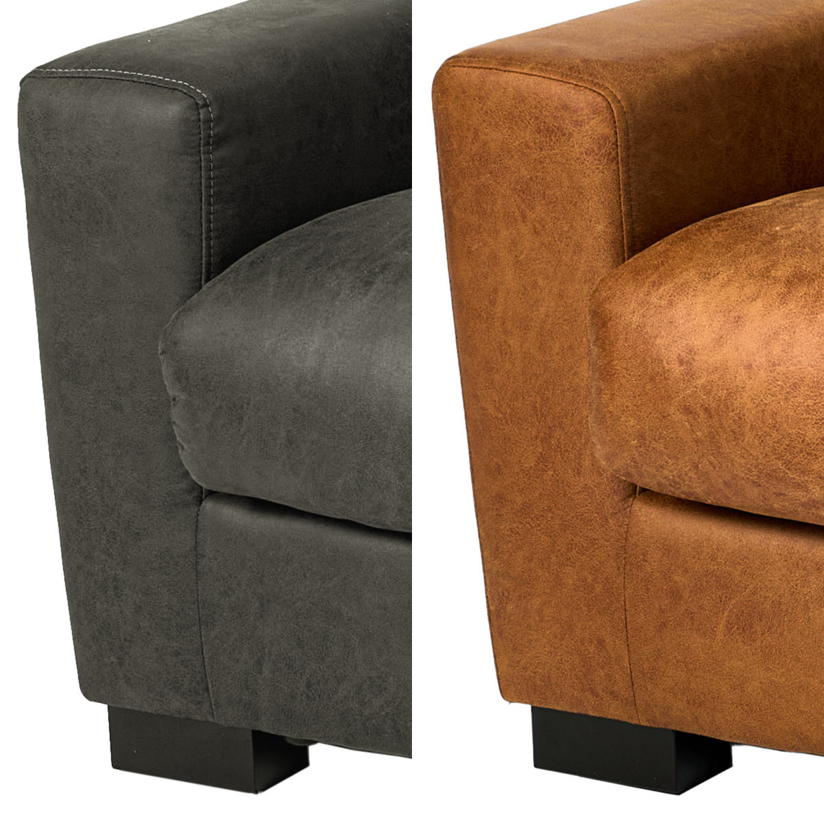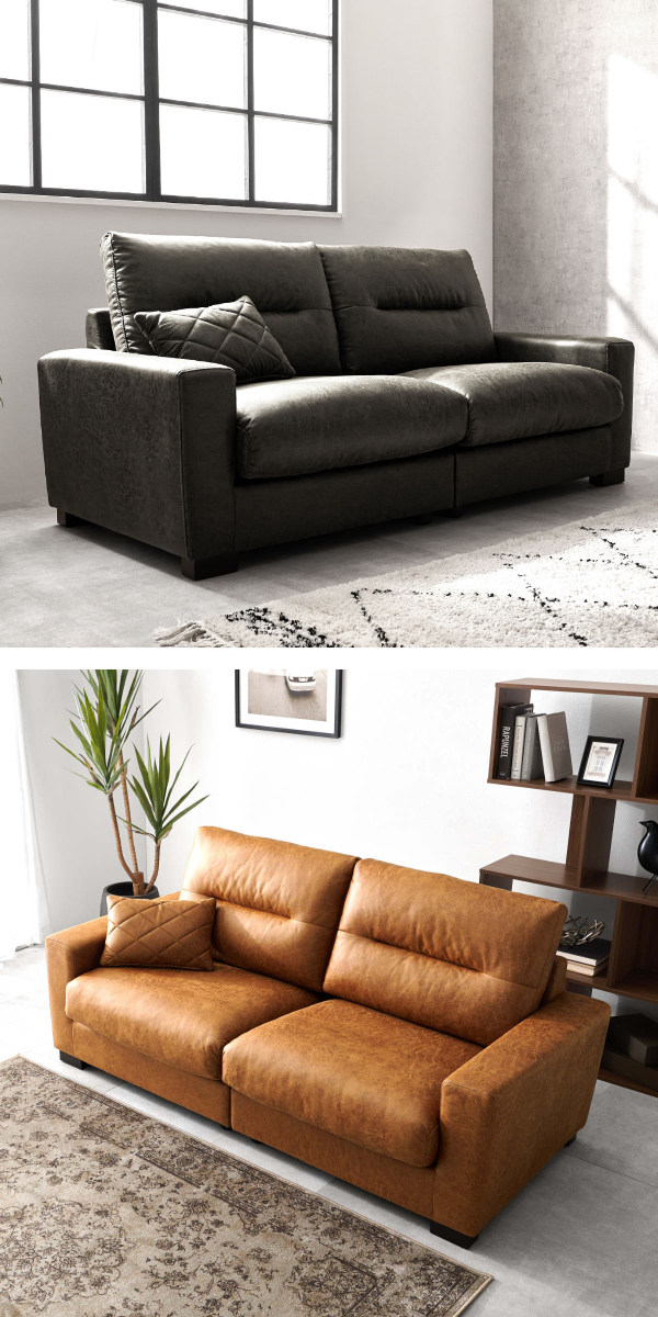 重厚感漂うヴィンテージレザー調のワイドソファ