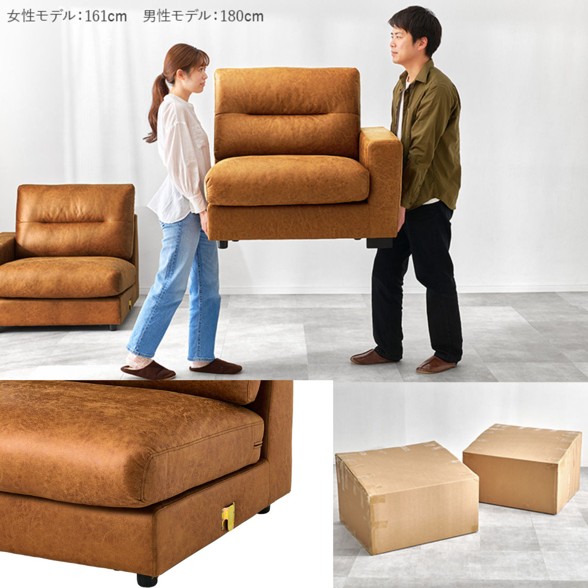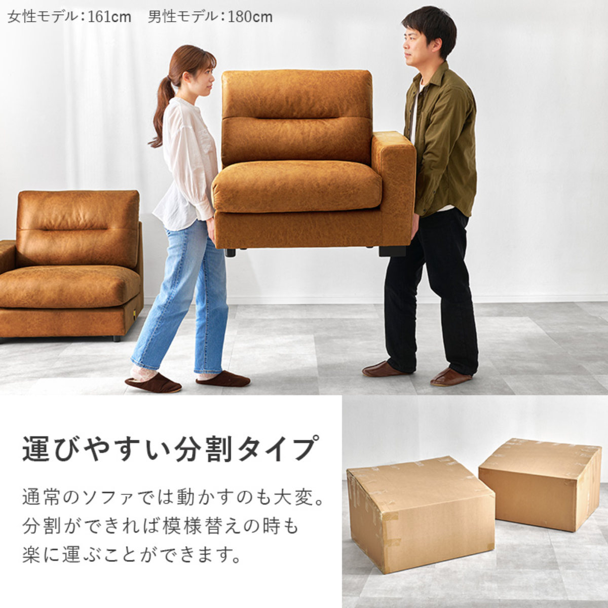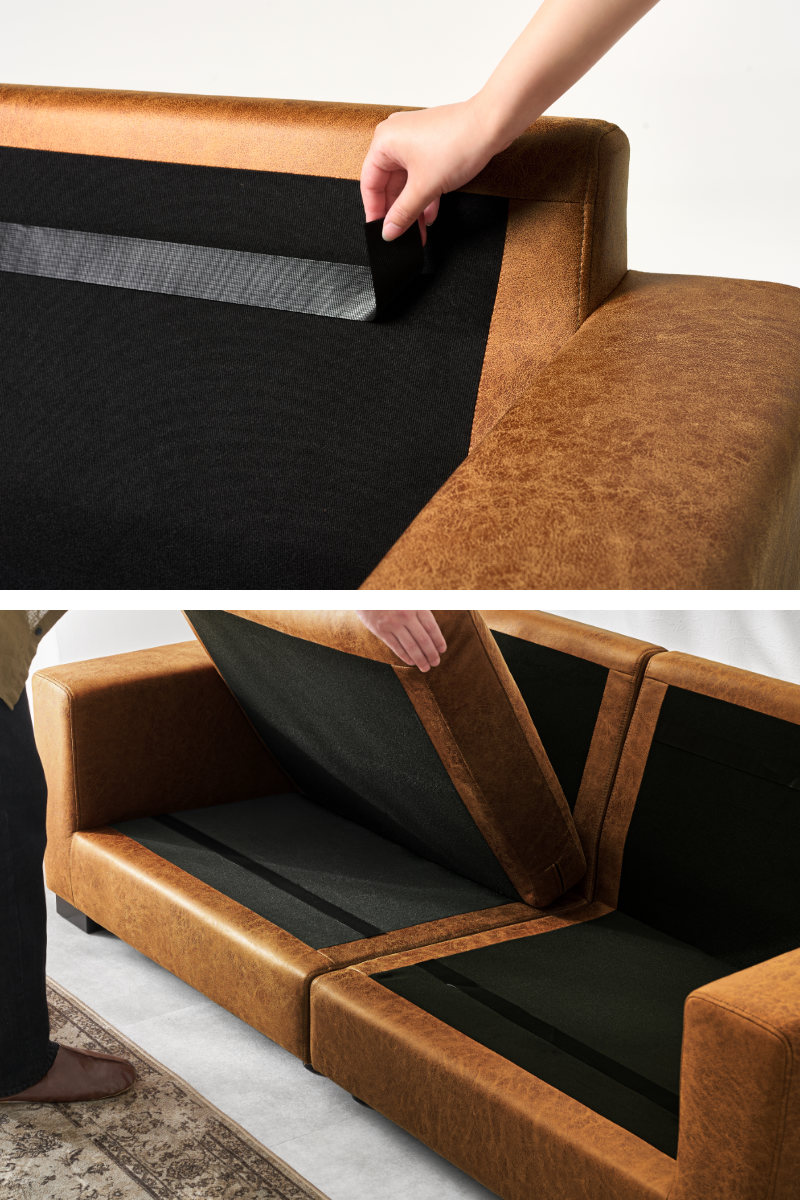 分割できる仕様で、搬入や室内での移動もラクに行えます。模様替えや引っ越しの際も扱いやすく、暮らしの変化に柔軟に対応できます。ソファ同士のを固定する金具が内部の側面についているのでズレる心配はありません。
