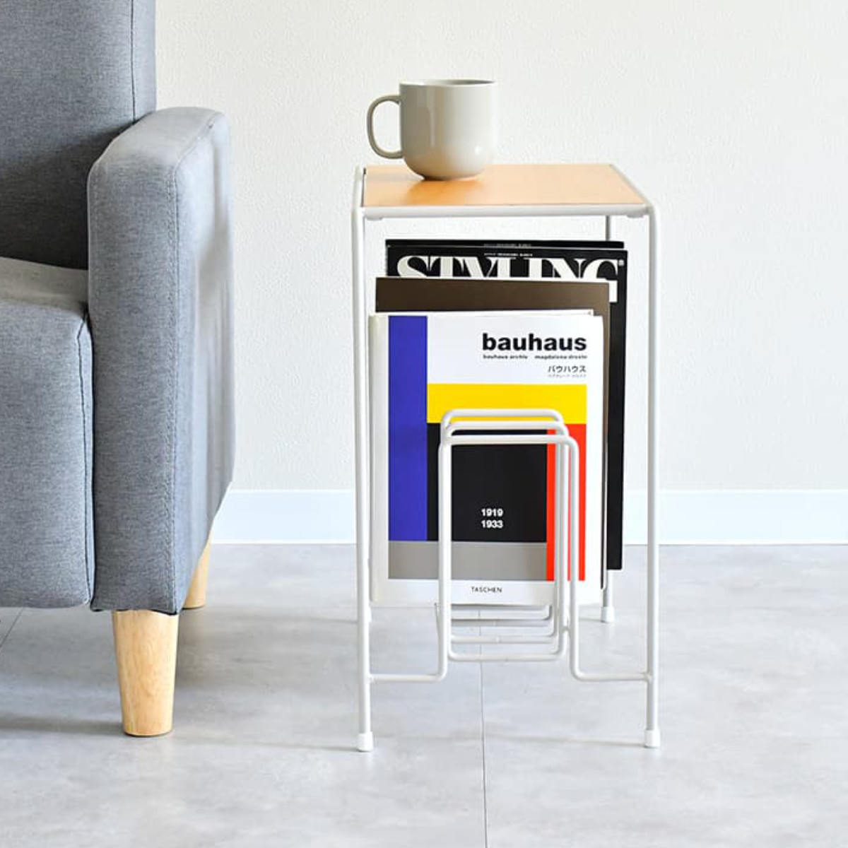 ![]() サイドテーブルスタンド 高さ91cm | ![]() サイドテーブル マガジンラック付き 高さ45cm 【▲このページの商品】 |