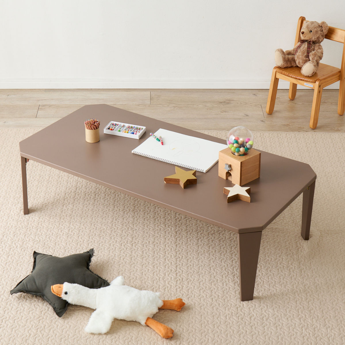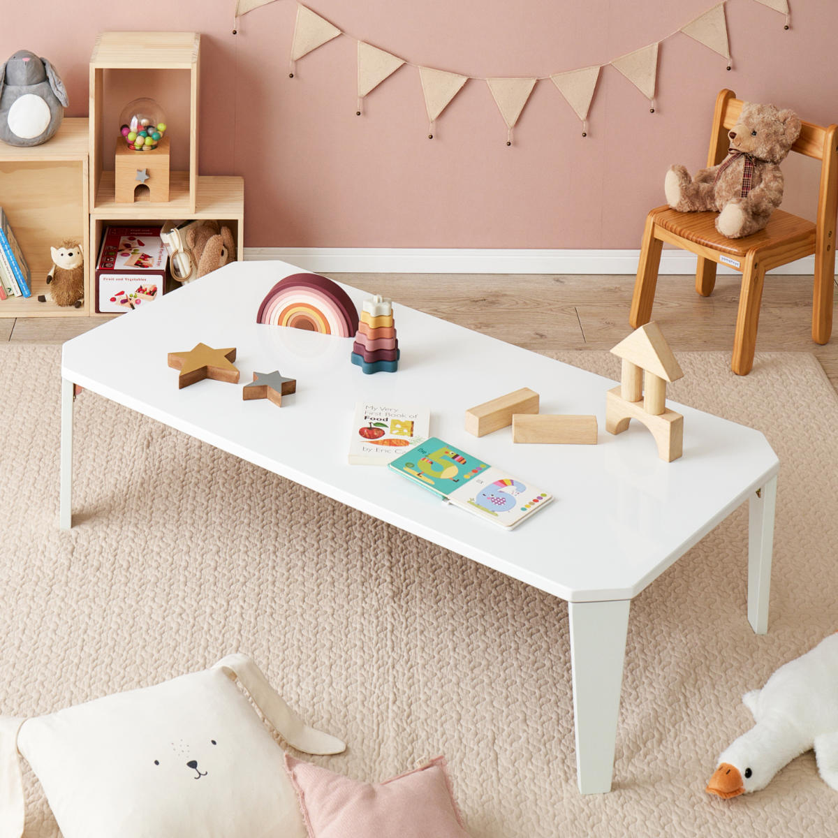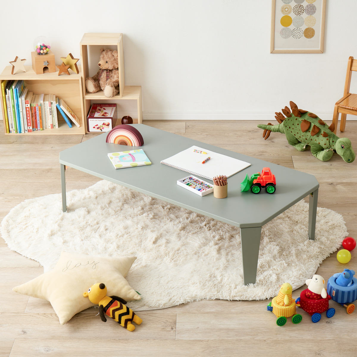 お絵かきやブロック遊び、おやつタイムまで、子どものわくわくに寄り添うテーブル。小さなお子さまも使いやすく、キッズチェアを組み合わせたり床に座ってもちょうどいい高さです。