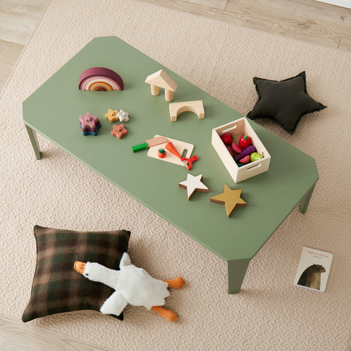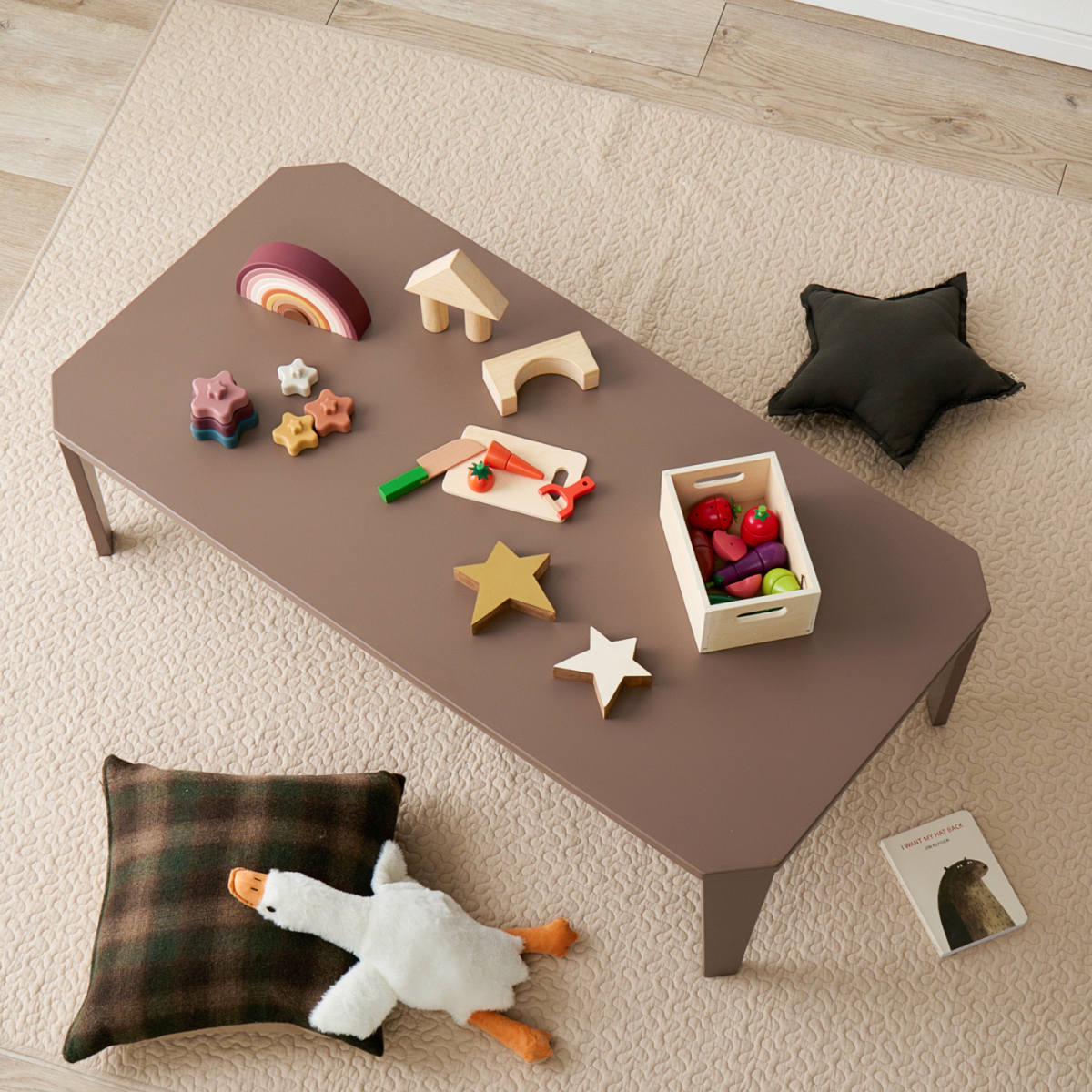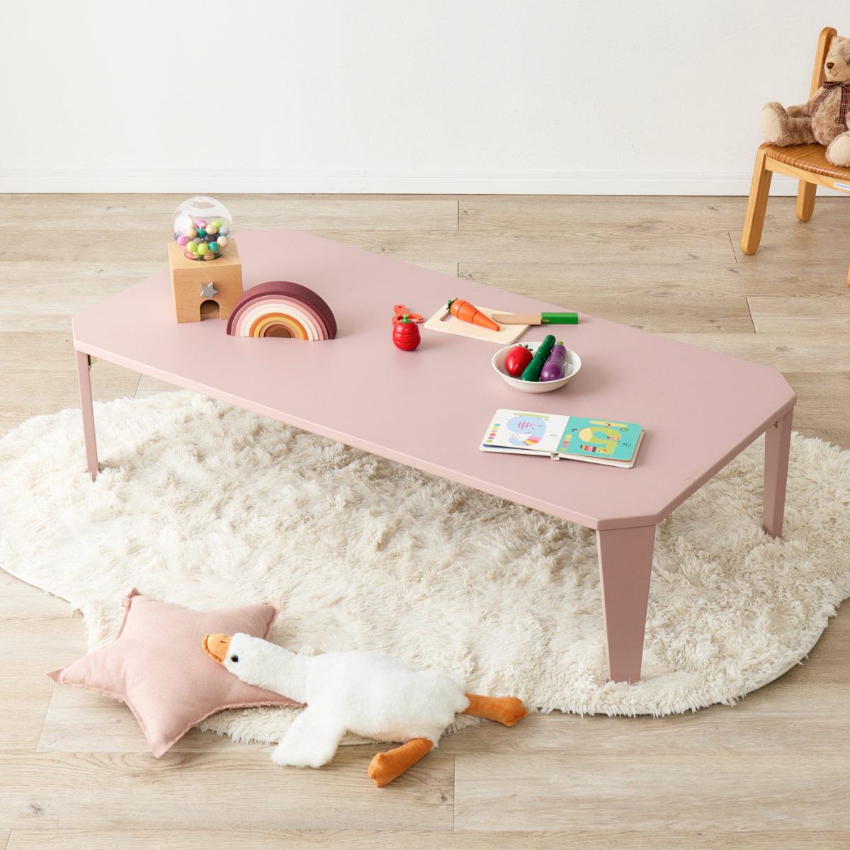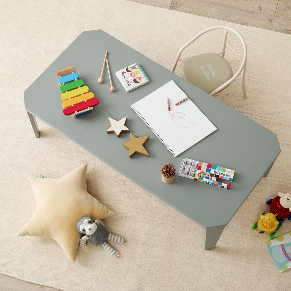 お絵かきやブロック遊び、おやつタイムまで、子どものわくわくに寄り添うテーブル。小さなお子さまも使いやすく、キッズチェアを組み合わせたり床に座ってもちょうどいい高さです。