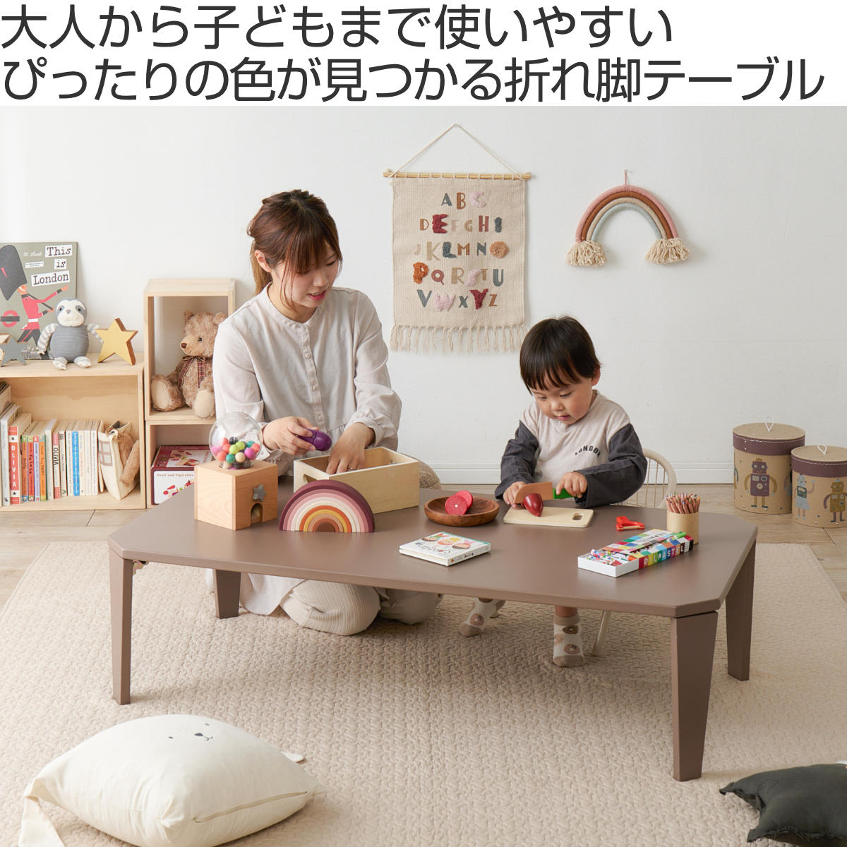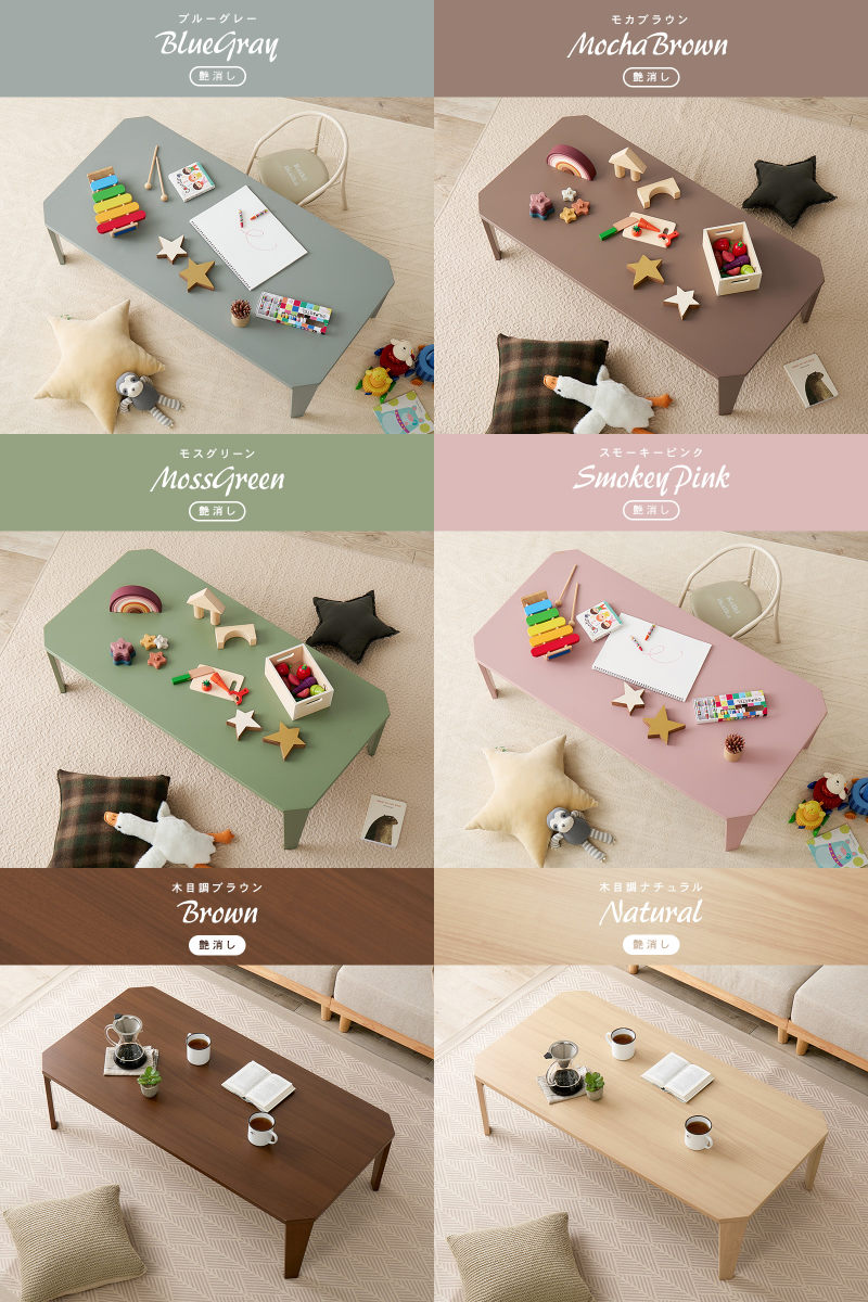 子どもも大人も使いやすいぴったりの色が見つかる折れ脚テーブル