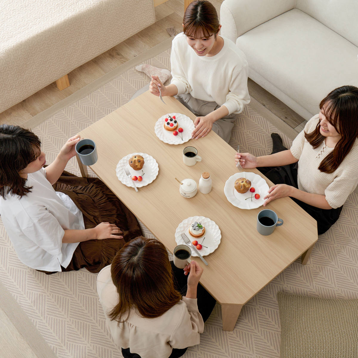 ソファ前に置きやすい高さとサイズ感で、リビングのくつろぎ時間にもぴったりです。家族の時間もひとり時間も心地よく過ごせます。