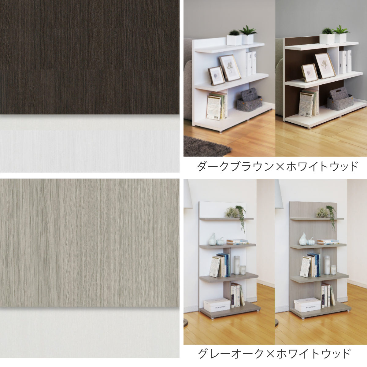 | 種類 | ダークブラウン、グレーオーク、スモーキーブラウン、ウォールナットブラウン |