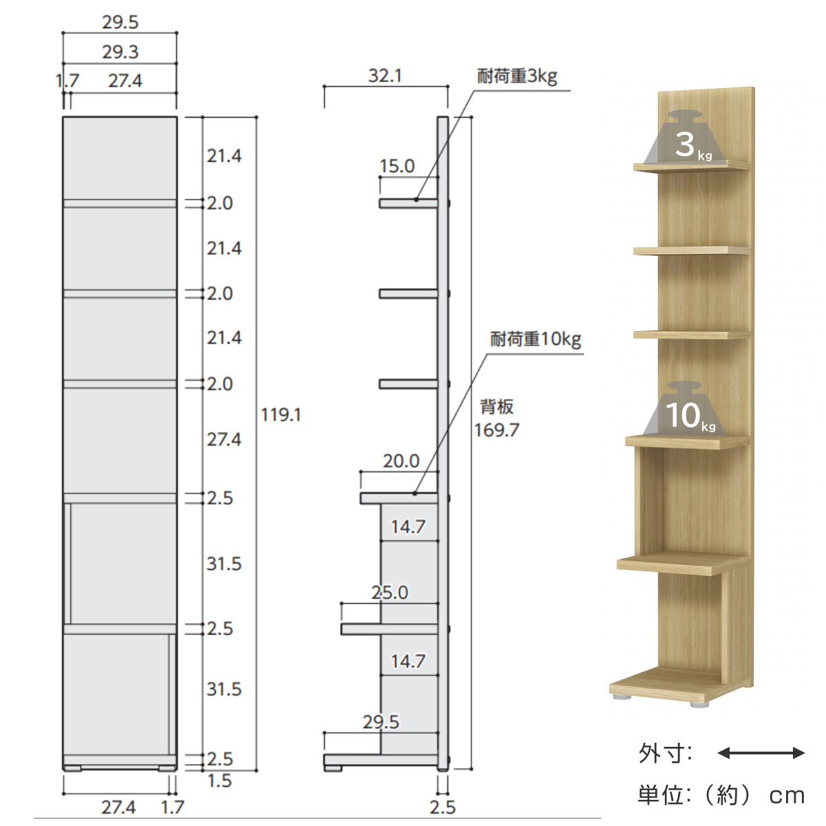 - 約幅29.5×奥行32.1×高さ170.1cm