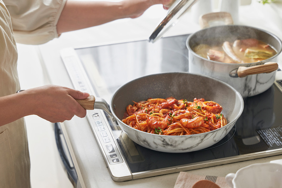 IH・ガス火を含むオール熱源対応で、さまざまなキッチン環境に対応します。
