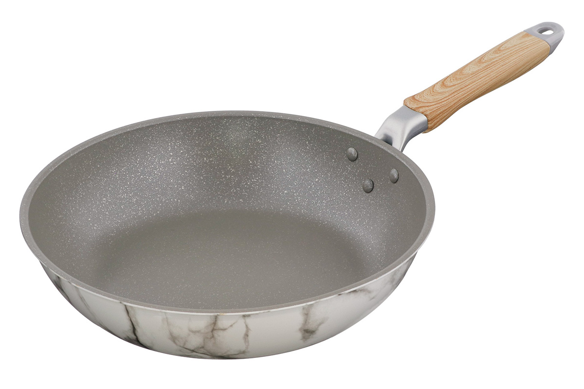 大理石模様が目を引く、オシャレなフライパンです。表面には高度な技術を用いた上品な大理石調デザインを施し、調理中も収納時も洗練された印象を与えます。